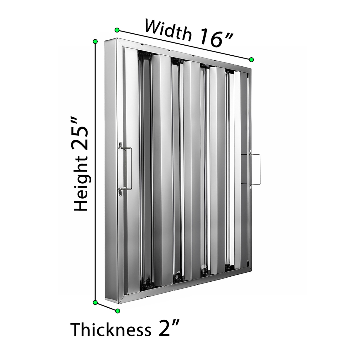 Enhance your kitchen ventilation system with our 16″ Width X 25″ Height X 2″ Thickness Stainless Steel Hood Filter, available in a convenient pack of 6. These filters are crafted from 430 stainless steel, offering exceptional durability and long-lasting performance. Designed to effectively trap grease, smoke, and particulates, these filters ensure a cleaner, safer, and more hygienic kitchen environment.