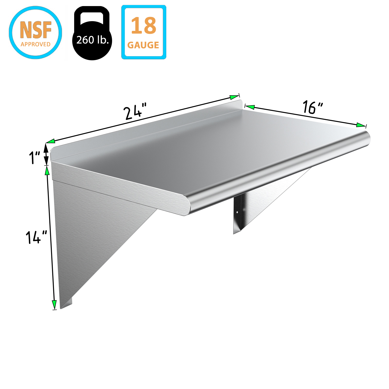 Installation is straightforward with the included mounting hardware, allowing you to securely attach the shelf to any wall surface. The smooth surface is easy to clean, making maintenance a breeze. Whether you need extra storage in your home or a reliable shelving option for your business, our 16″ X 24″ Stainless Steel Wall Mount Shelf is the ideal choice.