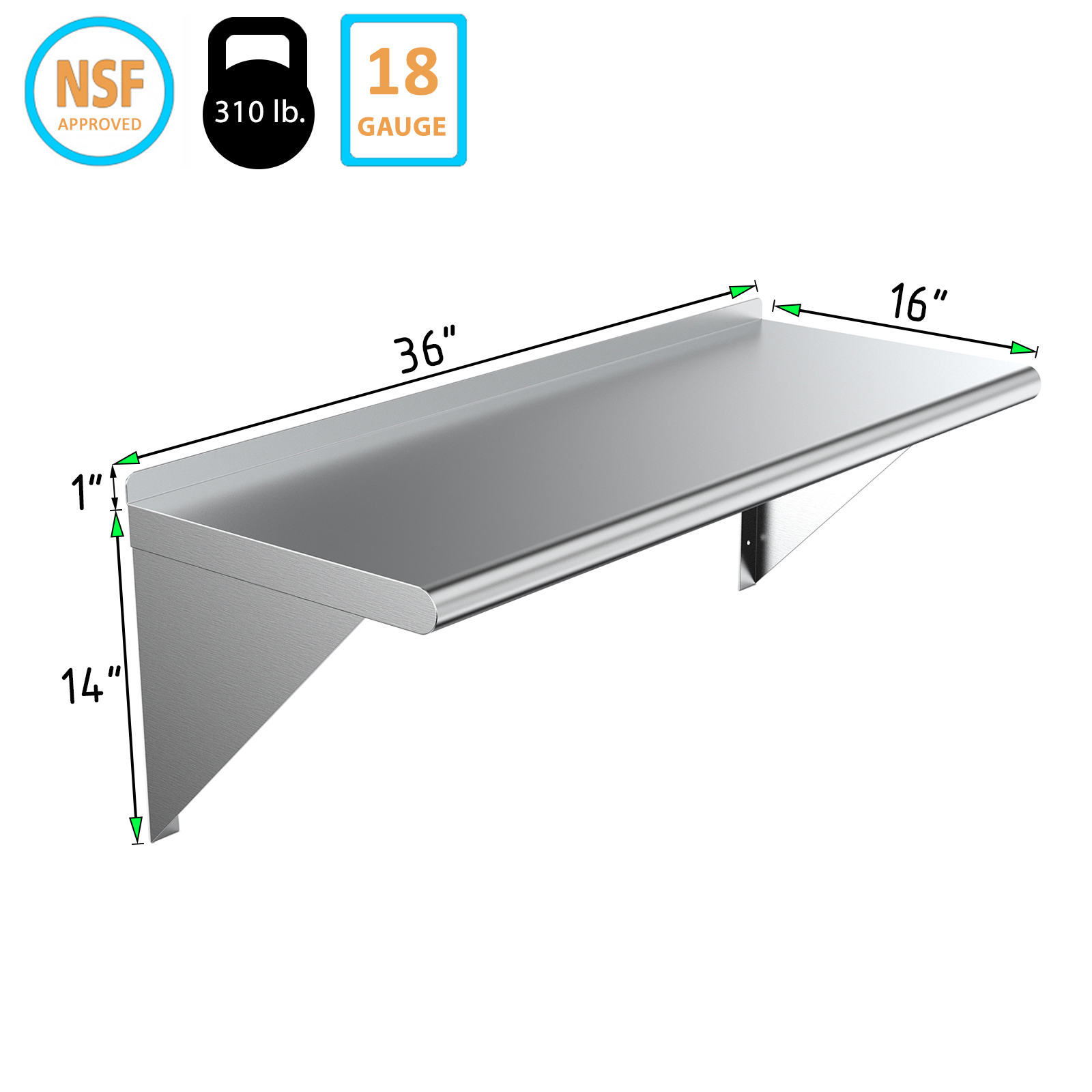 Installation is straightforward with the included mounting hardware, allowing you to securely attach the shelf to any wall surface. The smooth surface is easy to clean, making maintenance a breeze. Whether you need extra storage in your home or a reliable shelving option for your business, our 16″ X 36″ Stainless Steel Wall Mount Shelf is the ideal choice.