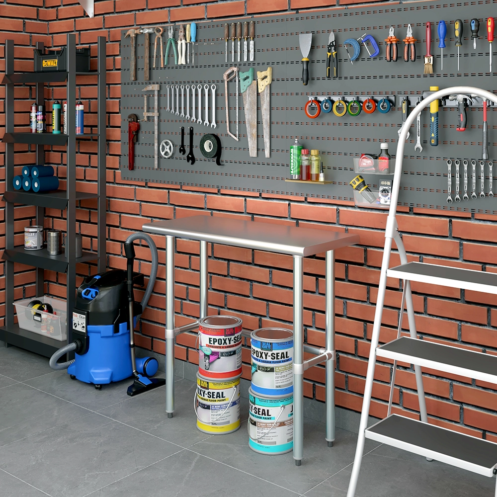 Measuring 16 inches by 36 inches, this work table offers a compact footprint that fits seamlessly into smaller spaces while still providing ample workspace for your projects. The clean, modern design complements any setting, adding a touch of professionalism to your environment. Whether you’re slicing ingredients in a busy kitchen, assembling components in a workshop, or conducting experiments in a lab, this stainless steel work table is a reliable and stylish addition to your workspace.