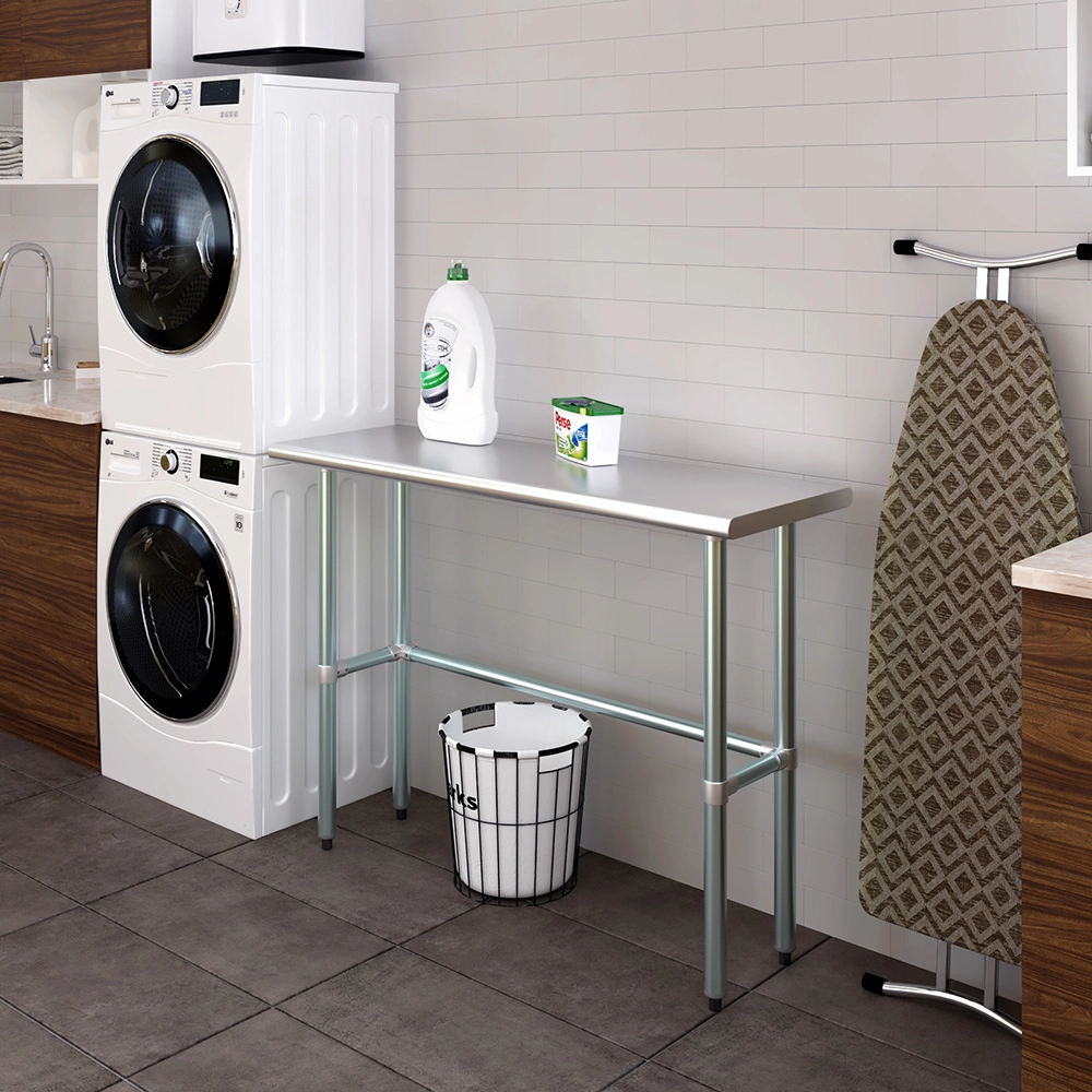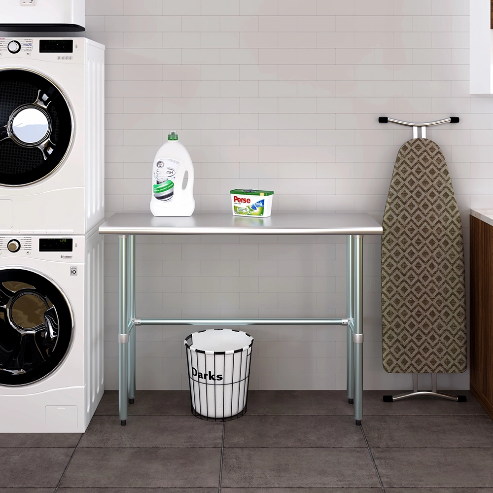 Measuring 16 inches by 48 inches, this work table offers a compact footprint that fits seamlessly into smaller spaces while still providing ample workspace for your projects. The clean, modern design complements any setting, adding a touch of professionalism to your environment. Whether you’re slicing ingredients in a busy kitchen, assembling components in a workshop, or conducting experiments in a lab, this stainless steel work table is a reliable and stylish addition to your workspace.