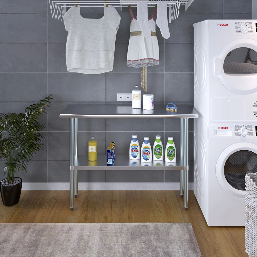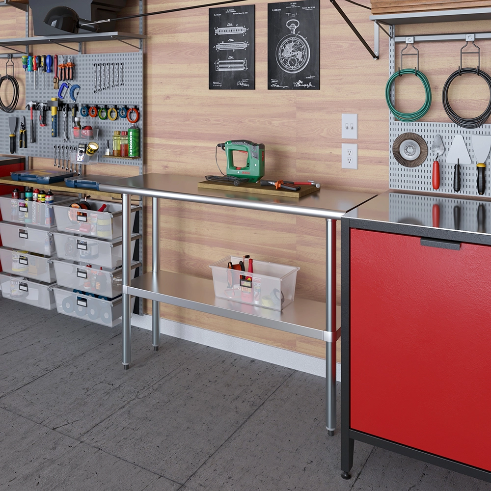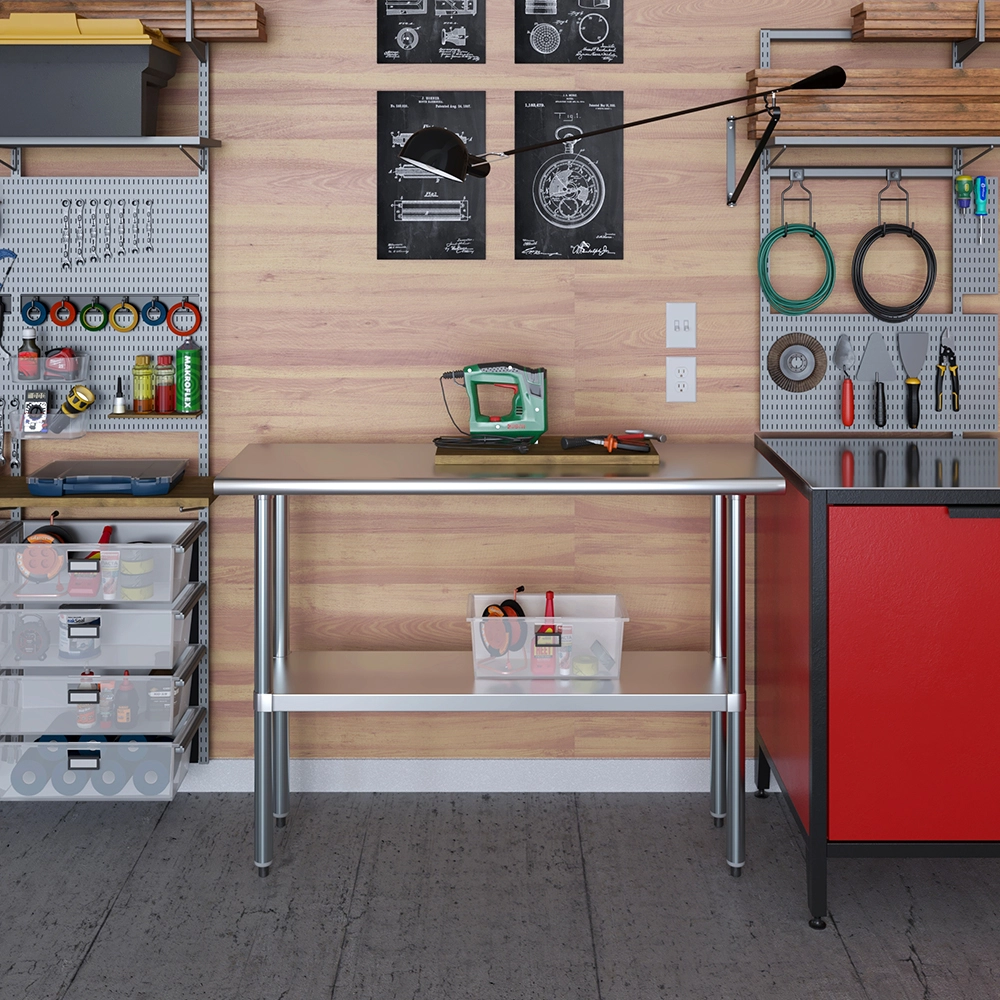 A key feature of this work table is the adjustable undershelf, which offers additional storage space for tools, supplies, and equipment. This undershelf can be positioned at your preferred height, allowing for customized storage solutions that meet your specific needs. Whether you need to store heavy equipment or small utensils, this versatile shelf enhances the functionality of your workspace by keeping essential items within easy reach.
