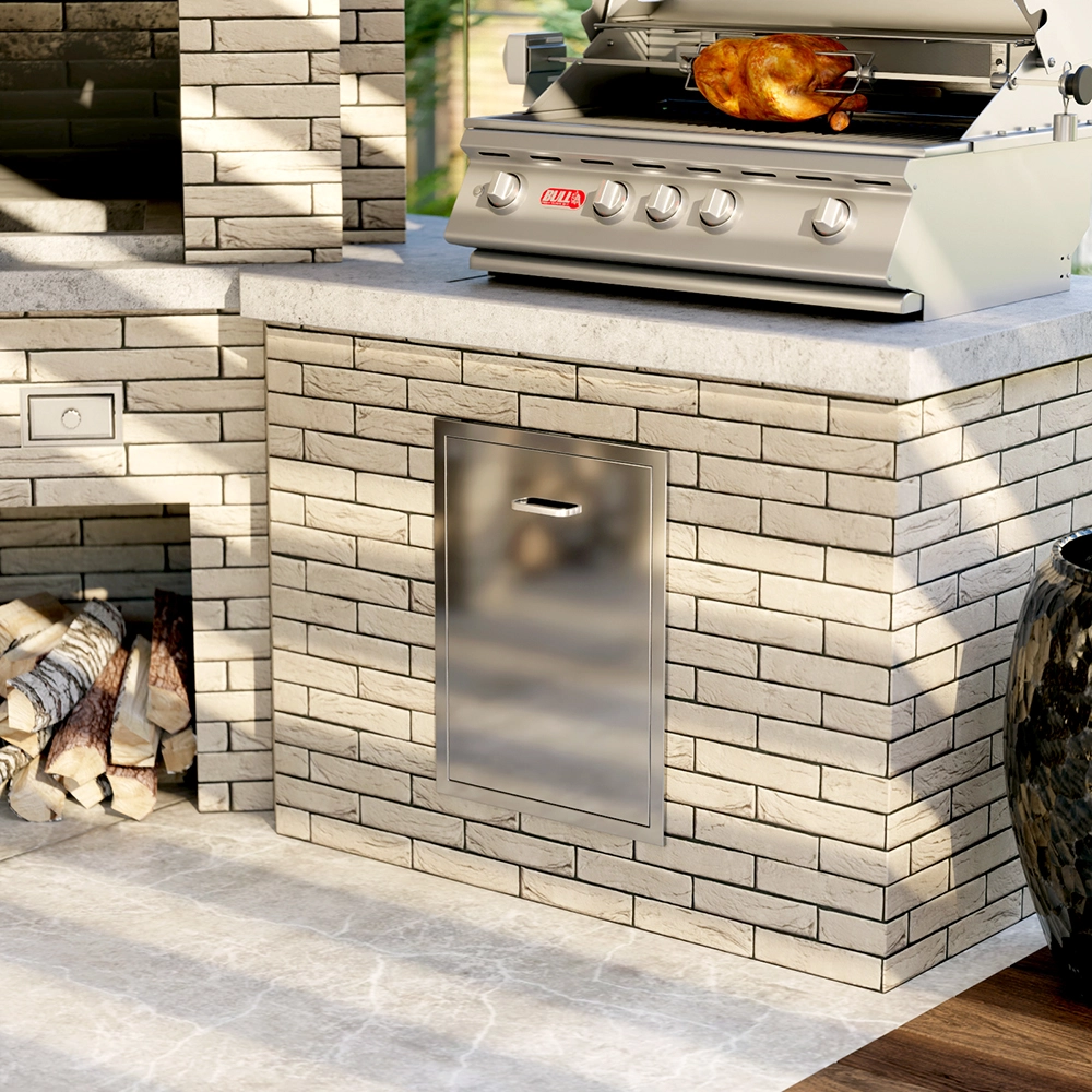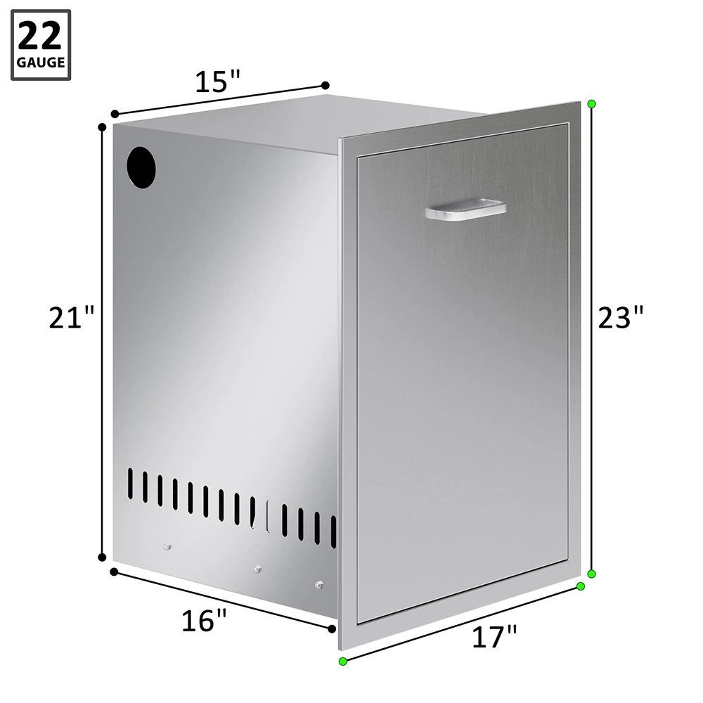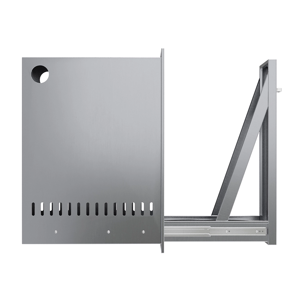 The 17 in. x 23 in. x 16 in. Propane Tank Drawer is a durable and practical solution for securely storing a 20 lb. propane tank in outdoor kitchens, grilling stations, or custom-built islands. Constructed from 22GA/304, weather-resistant stainless steel, this drawer is built to withstand outdoor elements while offering long-lasting performance.