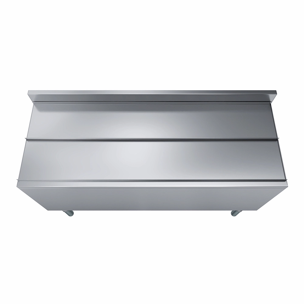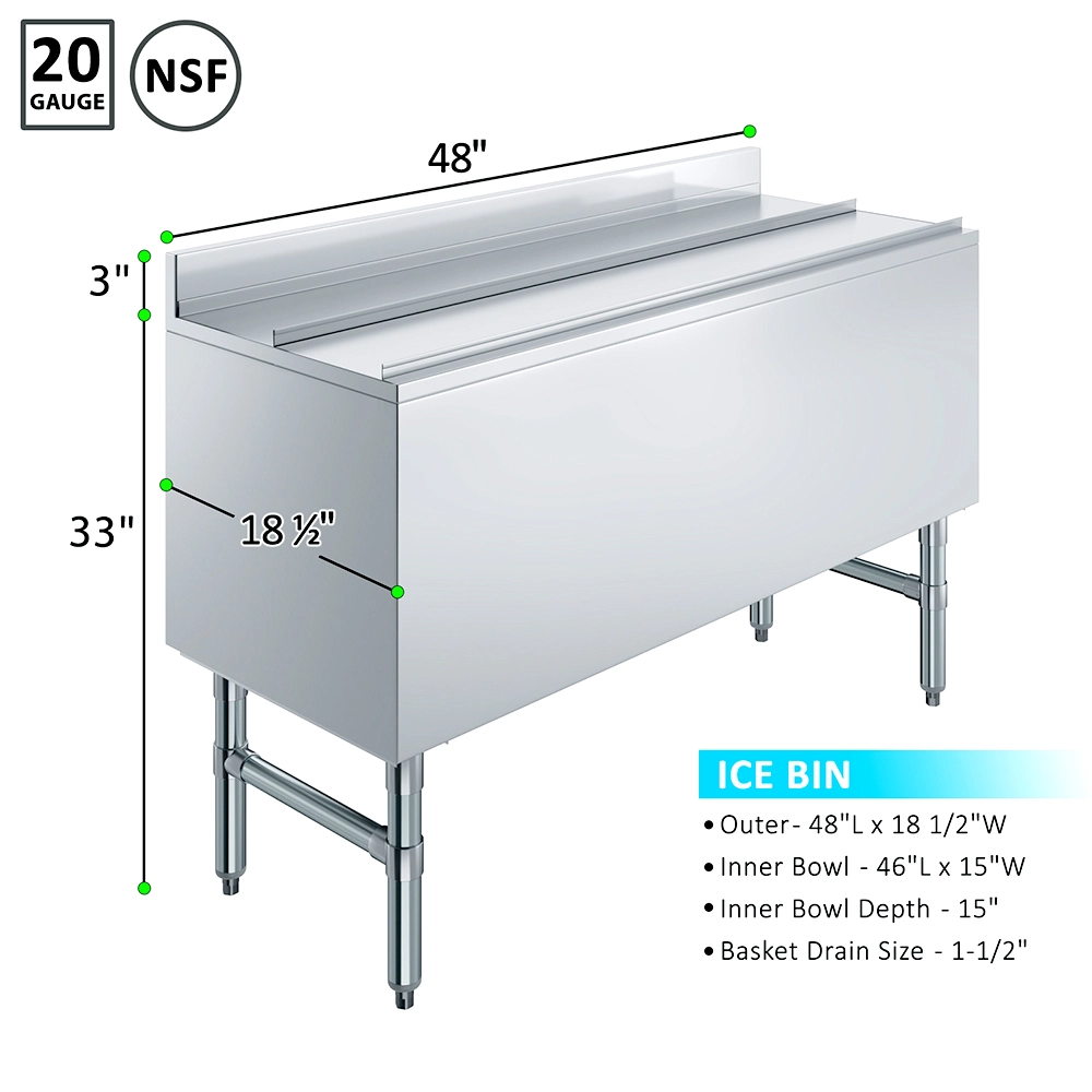 The compact 18 1/2 in. x 48 in. footprint fits neatly under the bar, making it ideal for maximizing space without sacrificing capacity. The insulated interior helps maintain ice for longer periods, while the sliding stainless steel lid offers quick access and helps prevent contamination and ice melt.