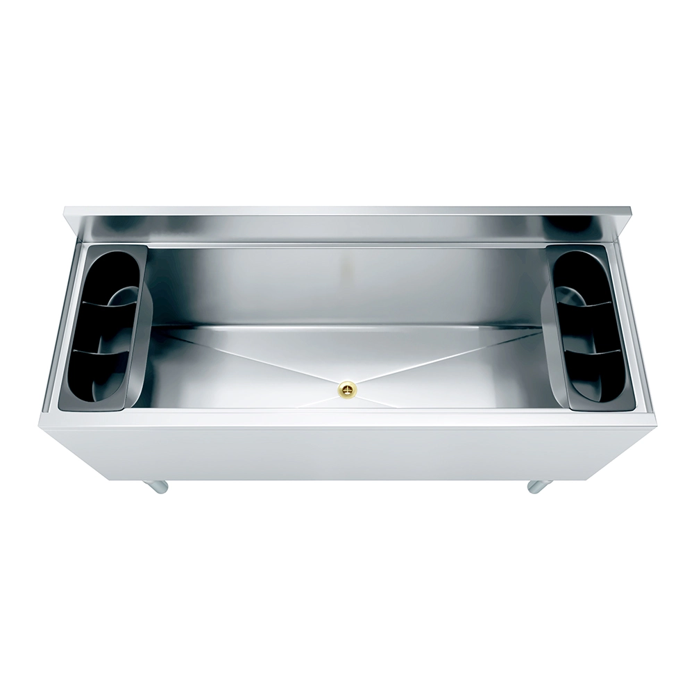 The 18 1/2 in. x 48 in. Underbar Ice Bin with Sliding Lid is a space-saving and highly durable solution designed for efficient ice storage in commercial bars, restaurants, and beverage service areas. Constructed from 20GA/304 stainless steel, this ice bin is easy to clean, and built to withstand the rigors of constant use in high-traffic environments. Its sleek and professional design ensures both functionality and visual appeal in any bar setup.