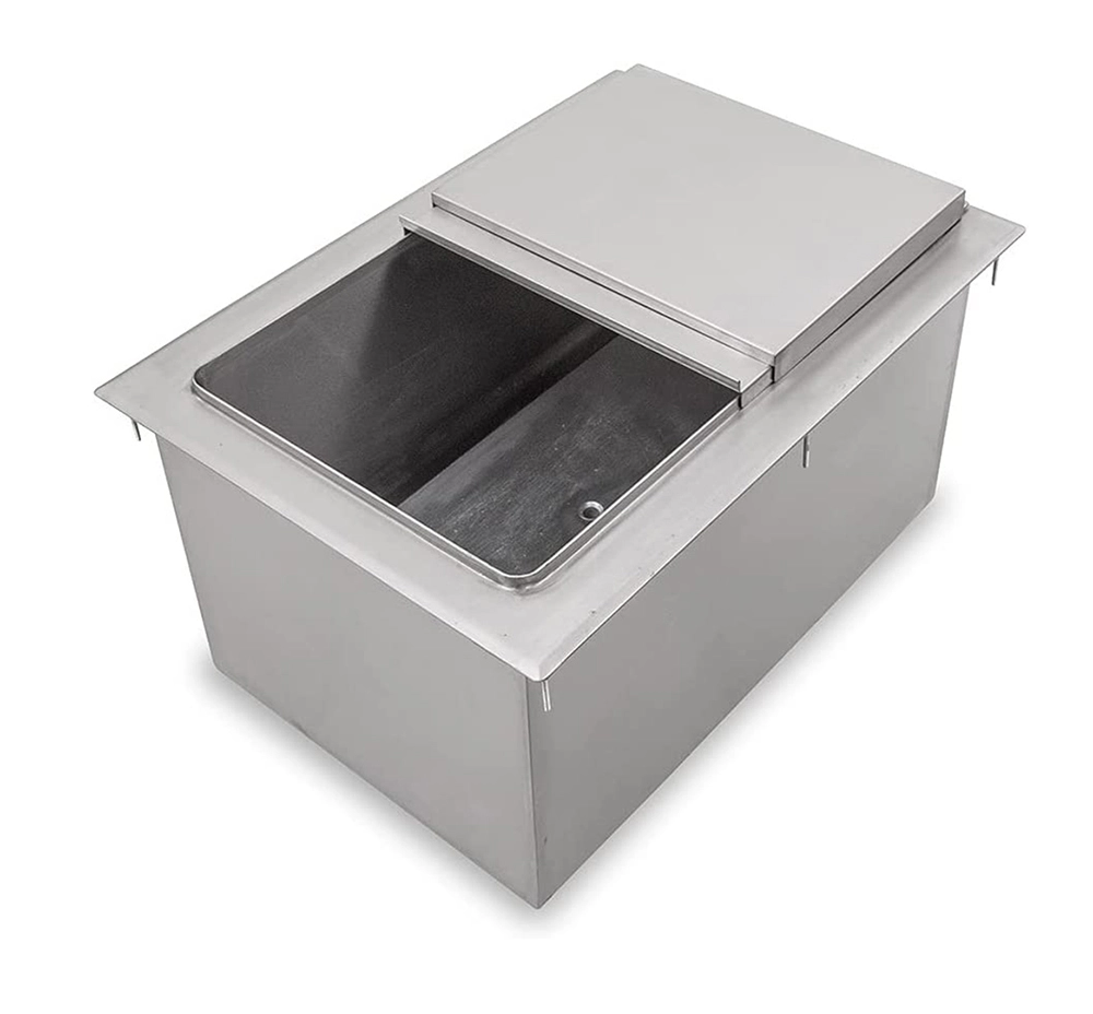 Enhance your beverage service with the 18 in. x 12 in. Stainless Steel Drop-In Ice Bin, a durable and practical solution for keeping ice readily accessible in any professional setting. Crafted from 20GA/304 stainless steel, this ice bin is designed to resist corrosion and wear, ensuring long-lasting performance in demanding environments like bars, restaurants, and catering events.