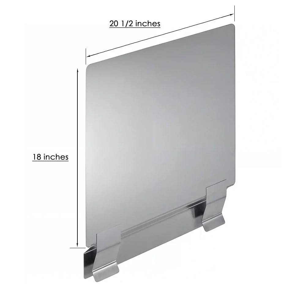 The 18 in. x 20 1/2 in. Stainless Steel Deep Fryer Splash Guard is a practical and durable solution designed to enhance safety and cleanliness in commercial kitchen environments. Constructed from 18GA/304 stainless steel, this splash guard offers excellent resistance to heat, grease, making it ideal for long-term use alongside deep fryers and other high-temperature cooking equipment.