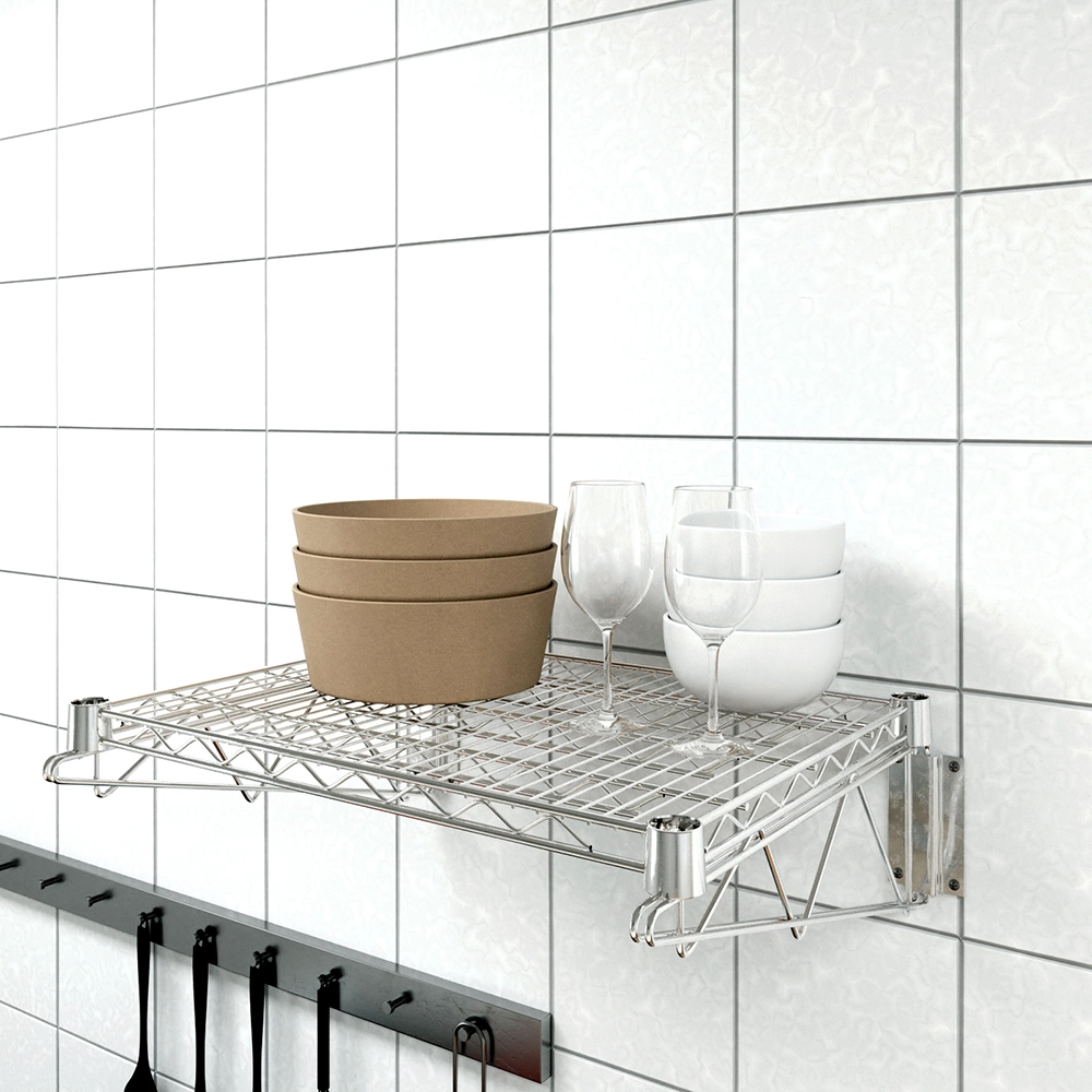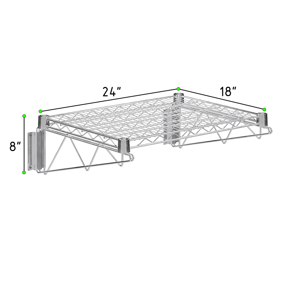 The 18 in. x 24 in. Chrome Wall Mount Wire Shelf With Brackets is a stylish and practical storage solution, ideal for both residential and commercial spaces. Constructed from heavy-duty steel and finished with a high-quality chrome plating, this wire shelf offers superior strength, durability, and resistance to rust and corrosion. Its sleek, reflective surface adds a modern touch to kitchens, pantries, garages, laundry rooms, or retail environments.
