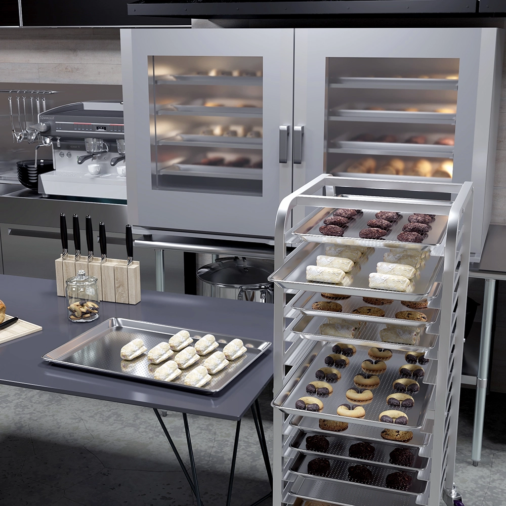 The smooth aluminum finish allows easy cleaning and quick turnaround during busy shifts. Ideal for bakeries, restaurants, cafés, and catering operations, this full-size perforated sheet pan offers professional-grade durability, efficiency, and reliability needed to support high-volume production. Designed for everyday use, it brings superior baking performance to any commercial kitchen.
