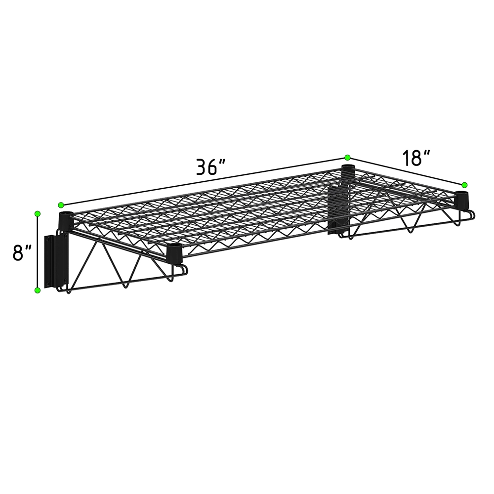 The 18 in. x 36 in. Black Epoxy Wall Mount Wire Shelf is a versatile and durable storage solution designed to optimize space in kitchens, pantries, garages, laundry rooms, and commercial settings. Made from high-quality steel, it features a black epoxy-coated finish that resists rust, corrosion, and wear, ensuring long-term durability. The open-wire design promotes air circulation, preventing dust buildup and keeping stored items fresh and clean.
