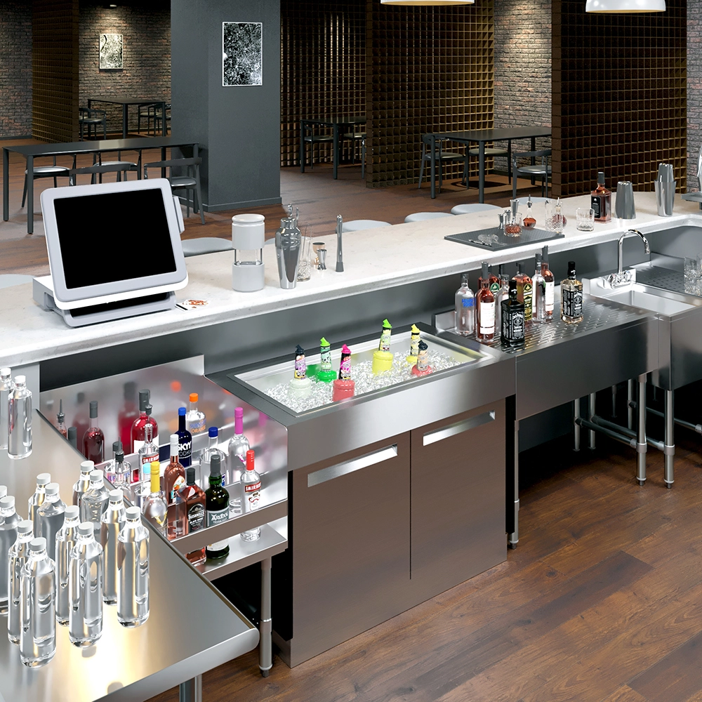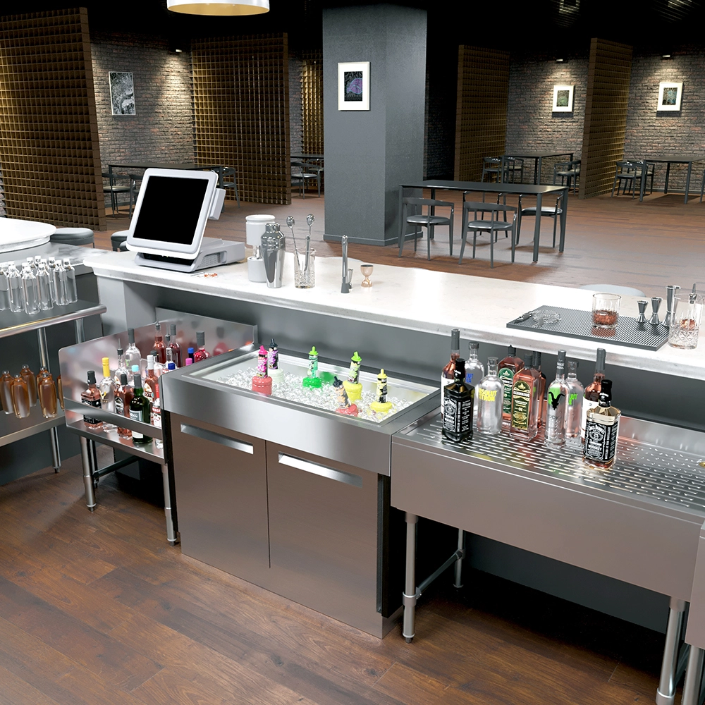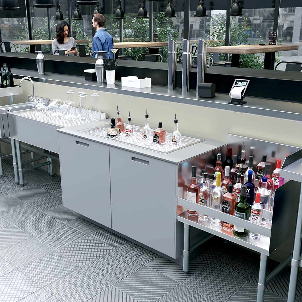 The stainless steel construction is not only durable but also easy to clean, helping maintain hygiene standards in food and beverage service. Its sleek, polished finish adds a professional look to any bar or workstation, complementing both modern and traditional decor styles.