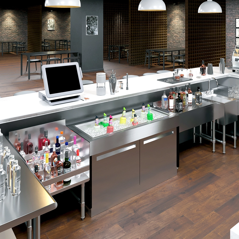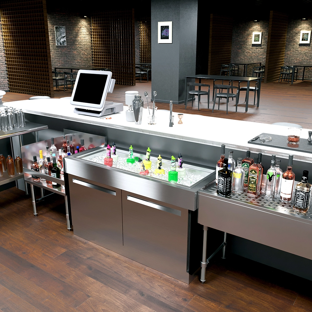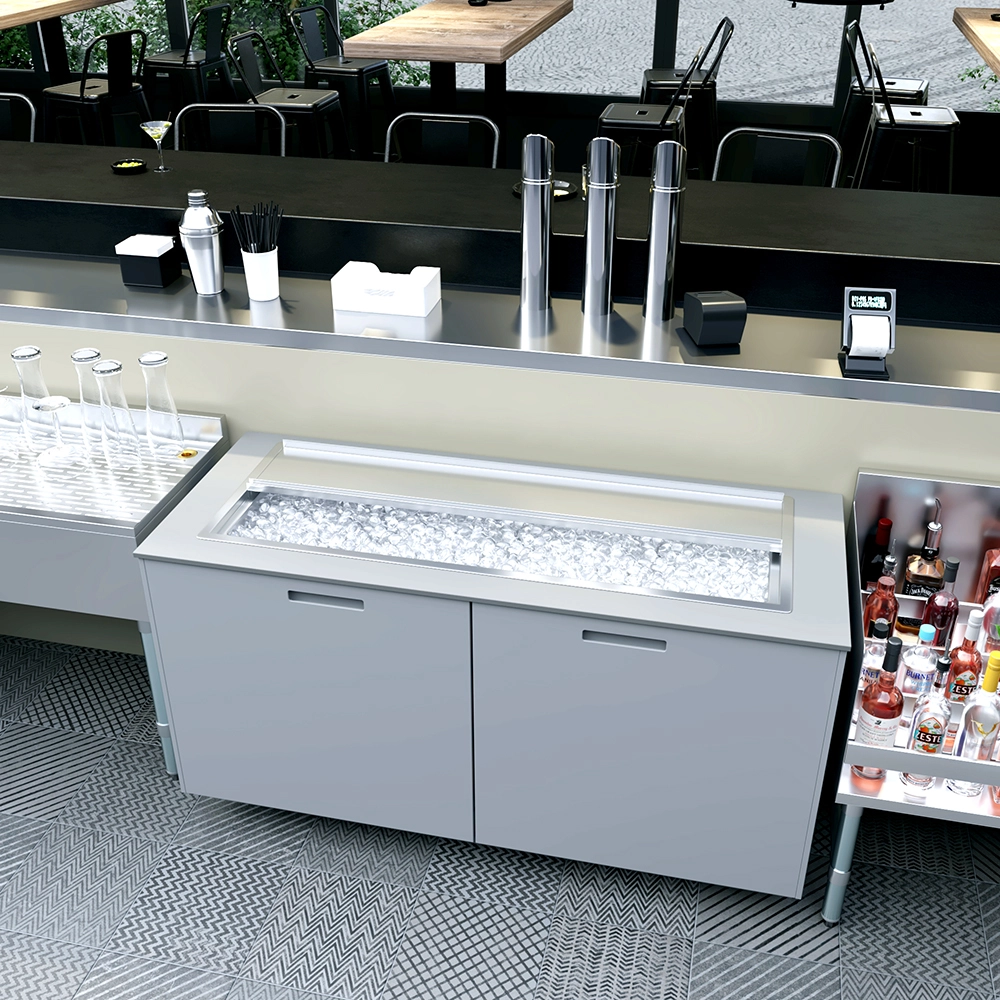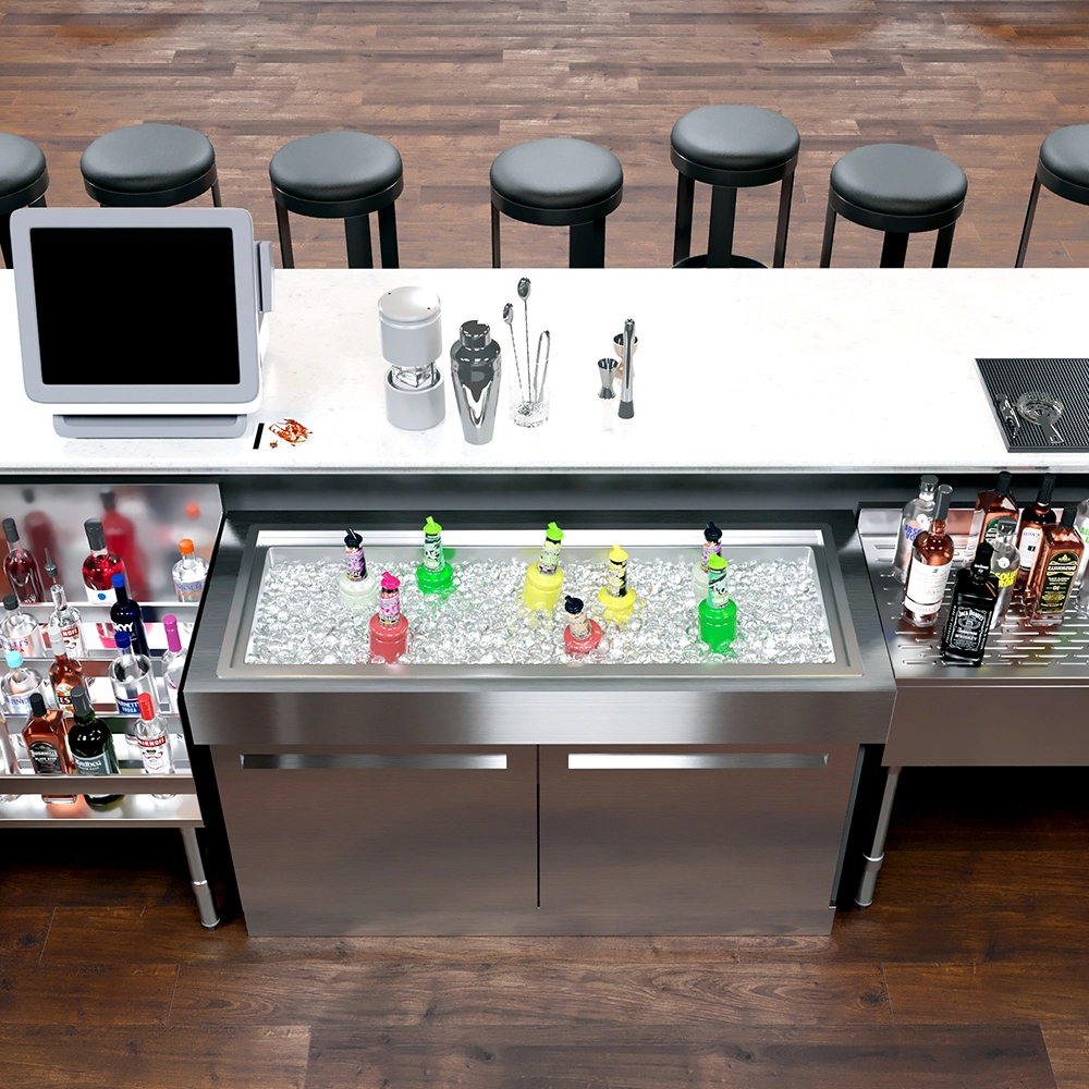 Upgrade your bar or kitchen setup with the 18 in. x 48 in. Stainless Steel Drop-In Ice Bin. Combining durability, style, and functionality, this ice bin is a must-have for any professional environment seeking to optimize service efficiency and maintain a clean, organized workspace