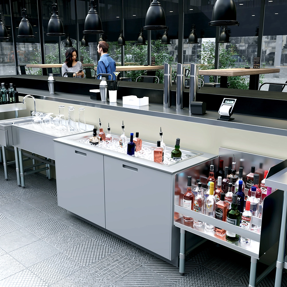 The stainless steel construction is not only durable but also easy to clean, helping maintain hygiene standards in food and beverage service. Its sleek, polished finish adds a professional look to any bar or workstation, complementing both modern and traditional decor styles.