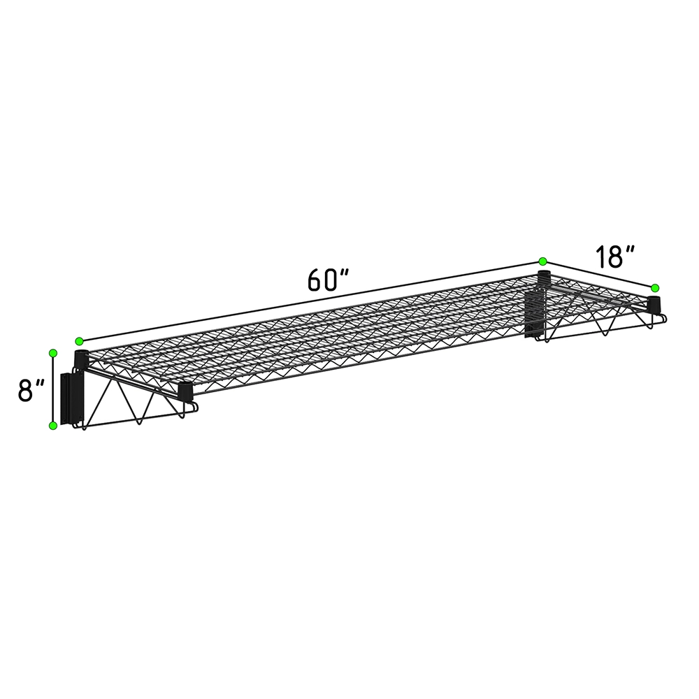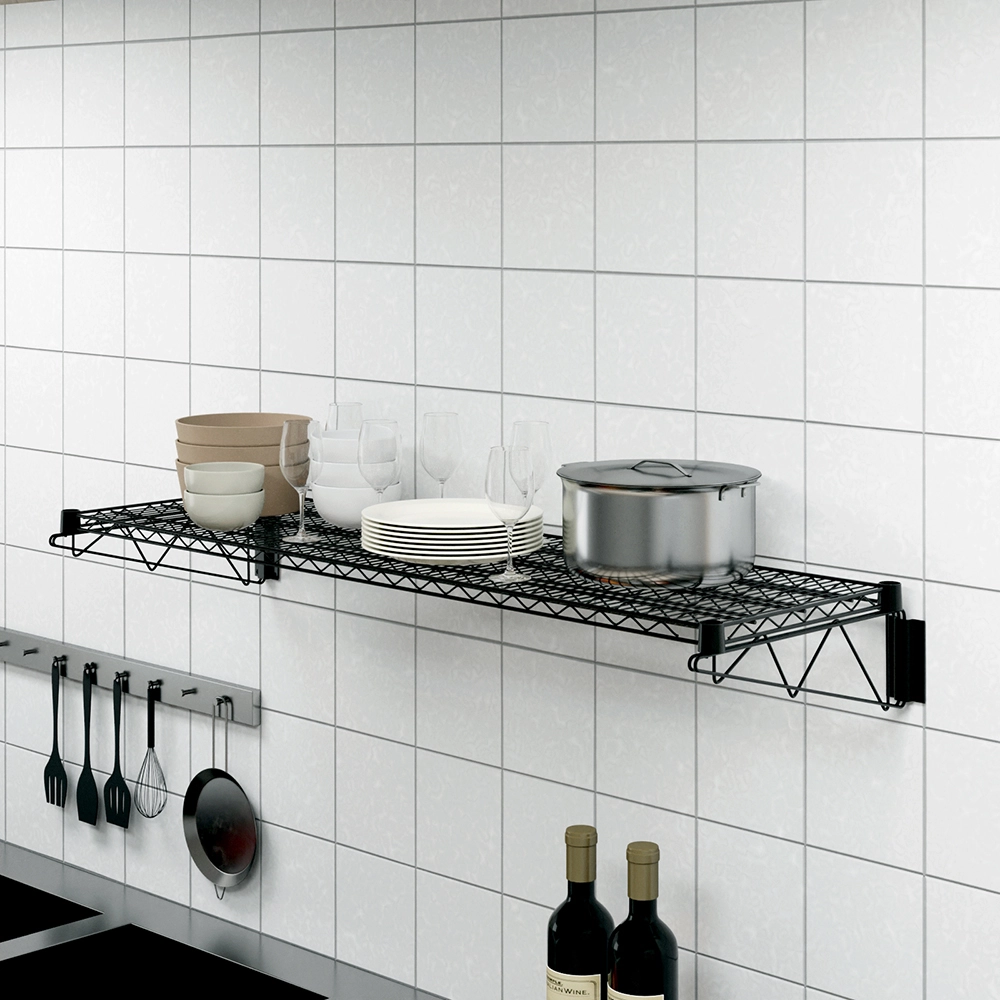 The 18 in. x 60 in. Black Epoxy Wall Mount Wire Shelf is a versatile and durable storage solution designed to optimize space in kitchens, pantries, garages, laundry rooms, and commercial settings. Made from high-quality steel, it features a black epoxy-coated finish that resists rust, corrosion, and wear, ensuring long-term durability. The open-wire design promotes air circulation, preventing dust buildup and keeping stored items fresh and clean.