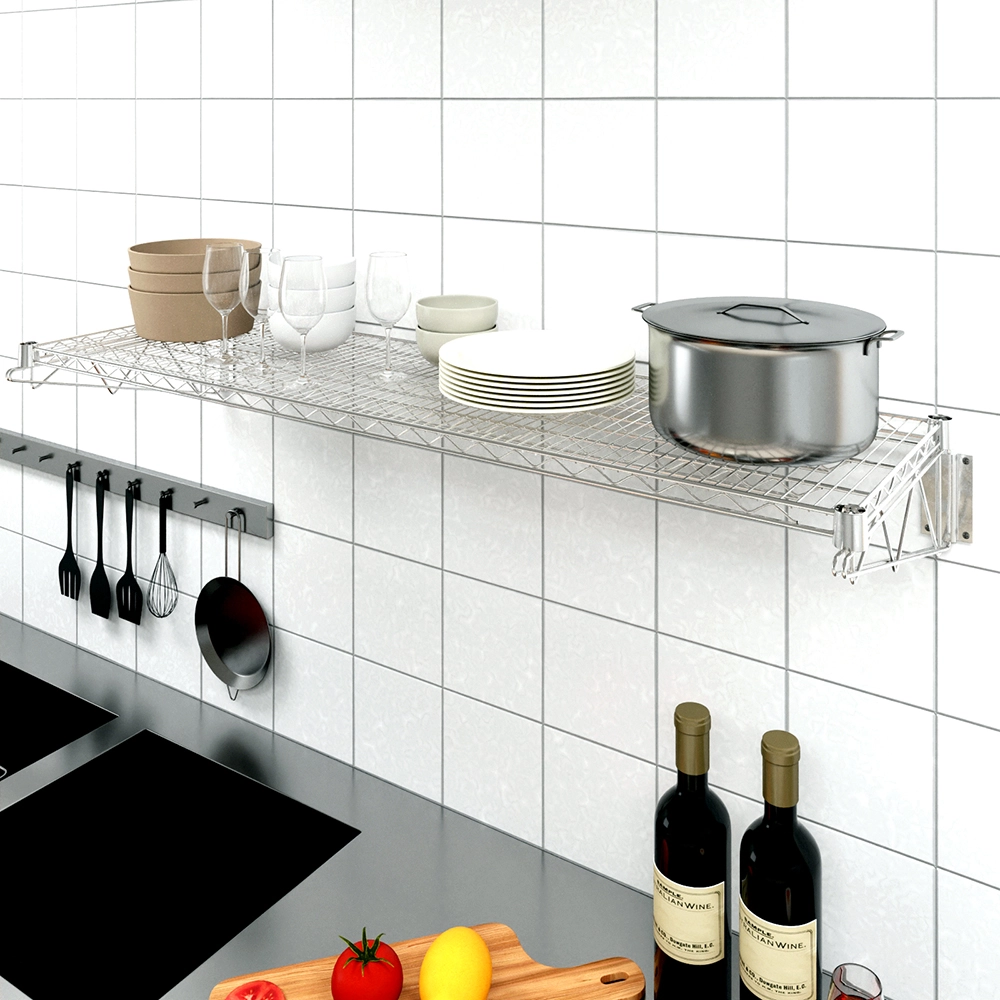Designed for wall-mounted installation, the shelf includes sturdy metal brackets that ensure a secure and stable hold. The open-wire design promotes ventilation, helping to prevent moisture buildup and keeping stored items clean and dry. With a weight capacity, it’s perfect for organizing cookware, cleaning supplies, pantry items, tools, and more.