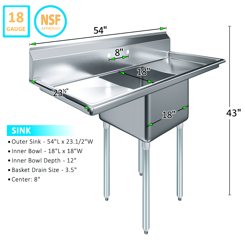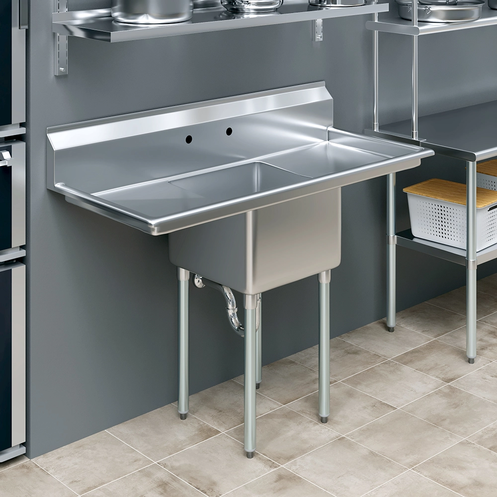 Whether you are upgrading your current setup or designing a new workspace, the 18″ X 18″ X 12″ One Compartment Stainless Steel Commercial Prep & Utility Sink with 18” Left and Right Drainboards is an excellent choice that combines practicality, durability, and style. Elevate your commercial kitchen or utility area with this indispensable piece of equipment, designed to meet the demands of any busy environment while providing flexibility and efficiency.