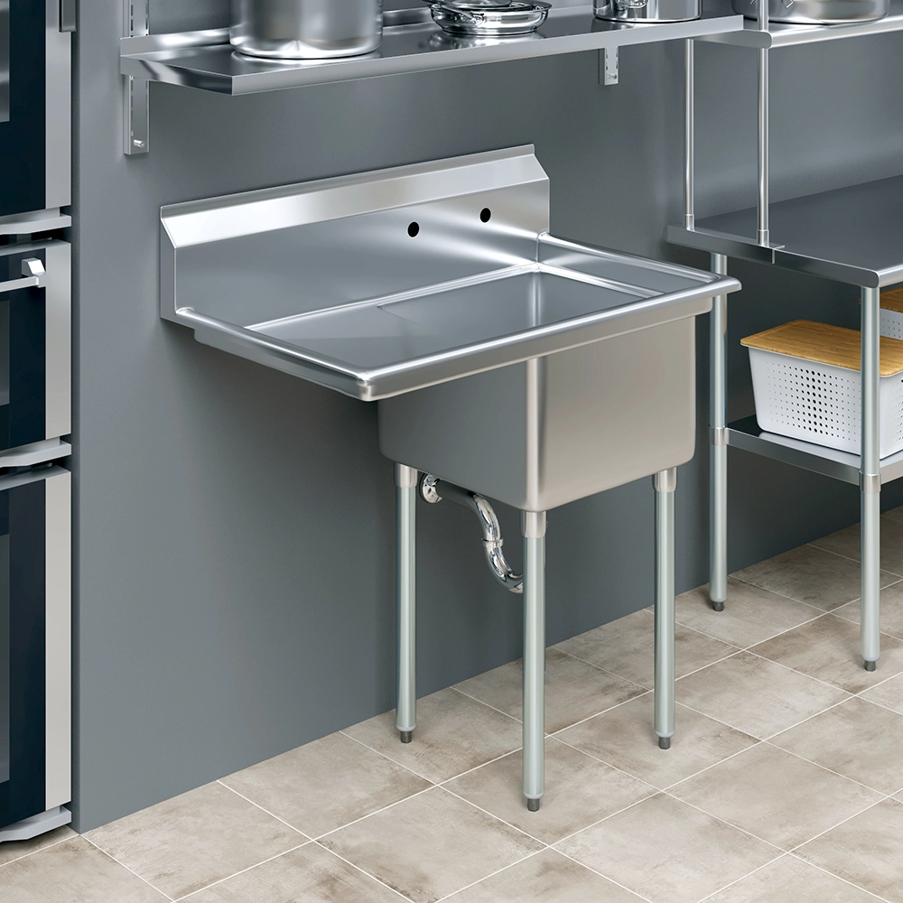 Whether you are upgrading your current setup or designing a new workspace, the 18″ X 18″ X 12″ One Compartment Stainless Steel Commercial Prep & Utility Sink with 18” Left Drainboard is an excellent choice that combines practicality, durability, and style. Elevate your commercial kitchen or utility area with this indispensable piece of equipment, designed to meet the demands of any busy environment while providing flexibility and efficiency.