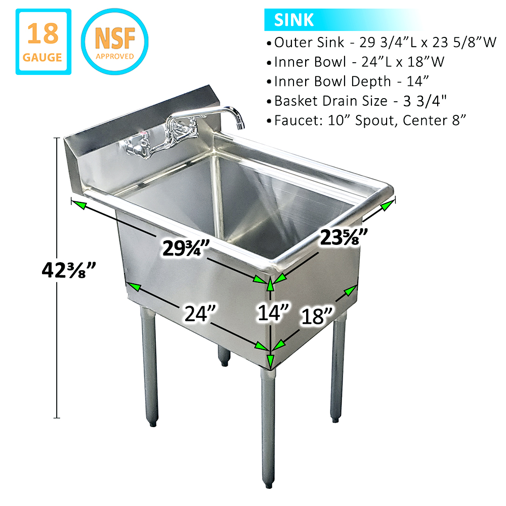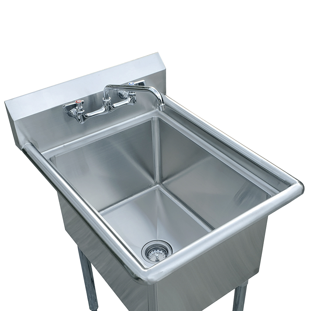 Introducing the 18″ X 24″ One Compartment Stainless Steel Prep & Utility Sink with Faucet, featuring an 12″ swing spout and 8″ centers – the perfect addition to any commercial kitchen, utility room, or workspace requiring a reliable and efficient sink solution. This sink is expertly crafted from 18GA/304 stainless steel, providing exceptional durability, resistance, and easy maintenance. Its sleek, polished finish ensures a professional appearance that complements any setting.