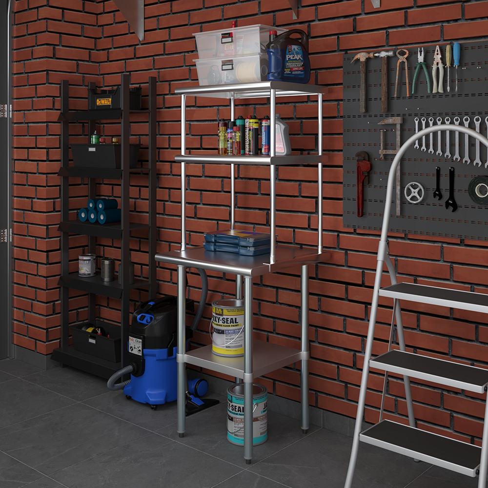 Each shelf is built to support significant weight, thanks to its robust construction, ensuring it can handle heavy-duty use in demanding environments. Whether you need to store bulky pots and pans or delicate ingredients, this shelf provides a reliable and sturdy solution.