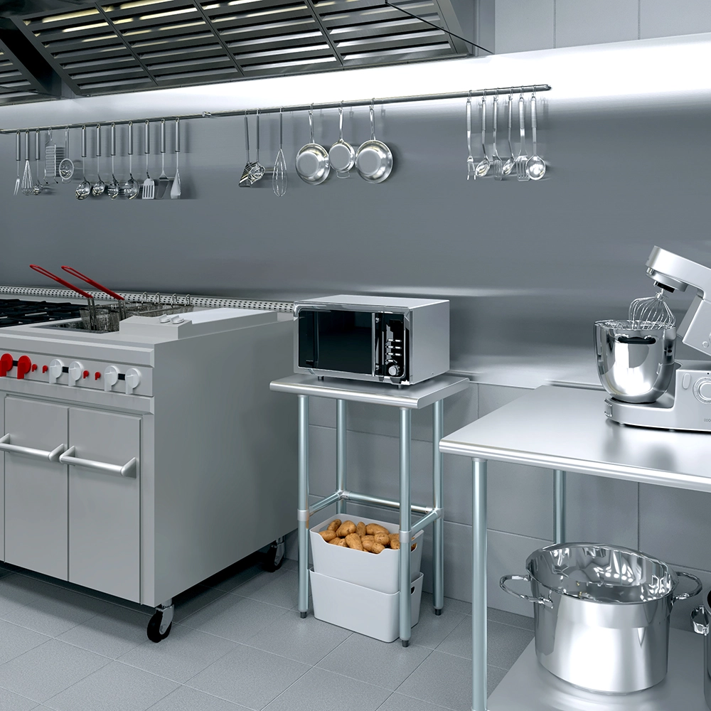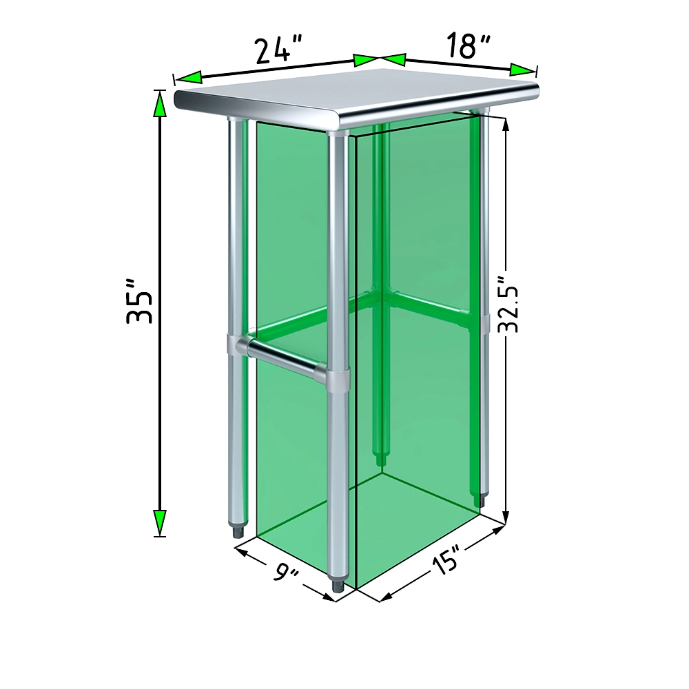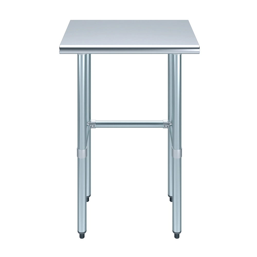 Enhance your workspace with the versatile and durable 18″ x 24″ Stainless Steel Work Table with Open Base. Crafted from 18GA/430 stainless steel, this work table is designed to withstand the rigors of daily use in commercial kitchens, workshops, laboratories, and other demanding environments. Its sleek, smooth surface is not only easy to clean but also resistant, ensuring long-lasting performance and hygiene.