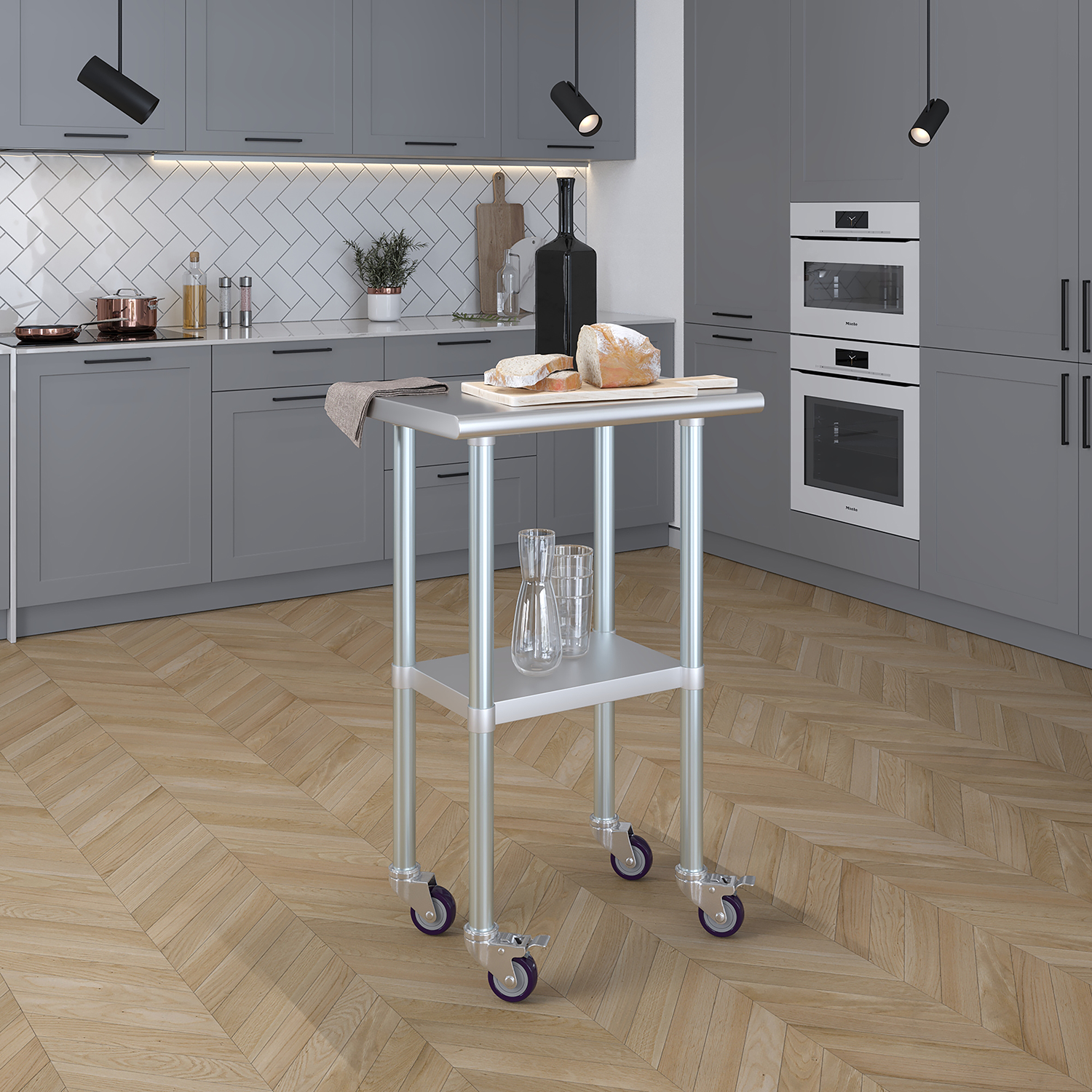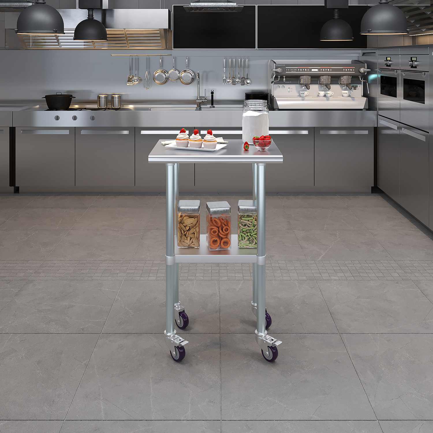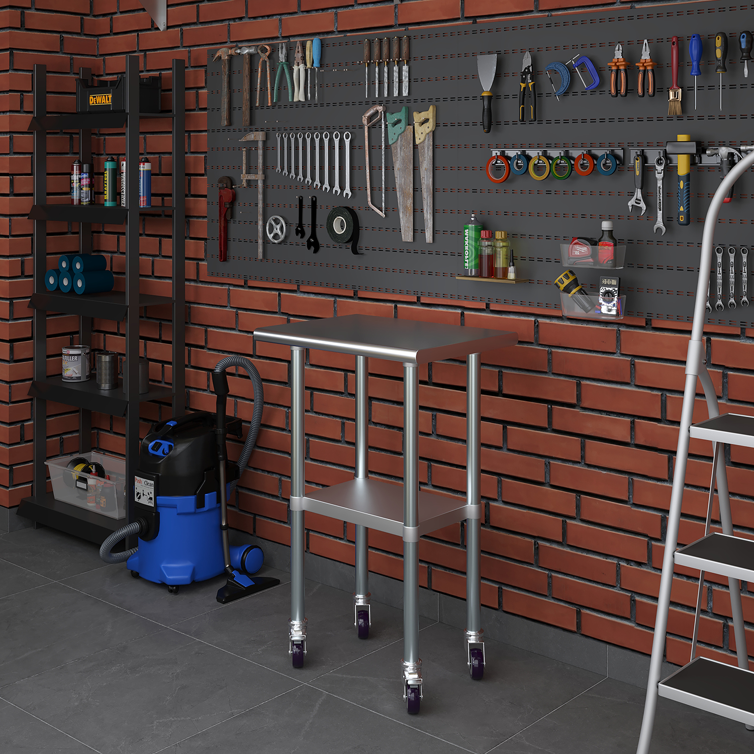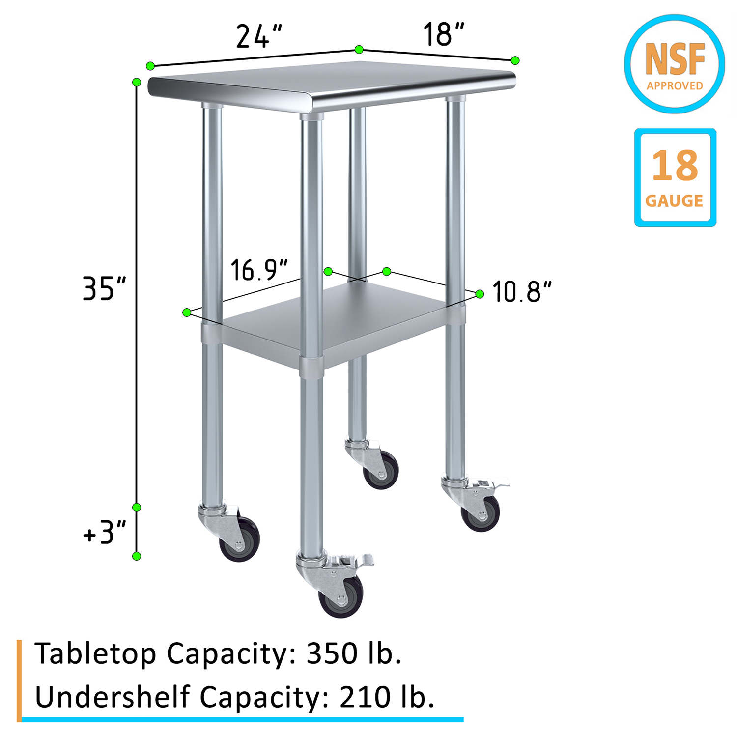 The compact dimensions of 18 inches by 24 inches make this work table an excellent choice for smaller spaces while still providing a robust and functional workspace. Despite its compact footprint, the table offers ample space for a variety of tasks, from food preparation and assembly work to scientific experiments and crafting projects.
