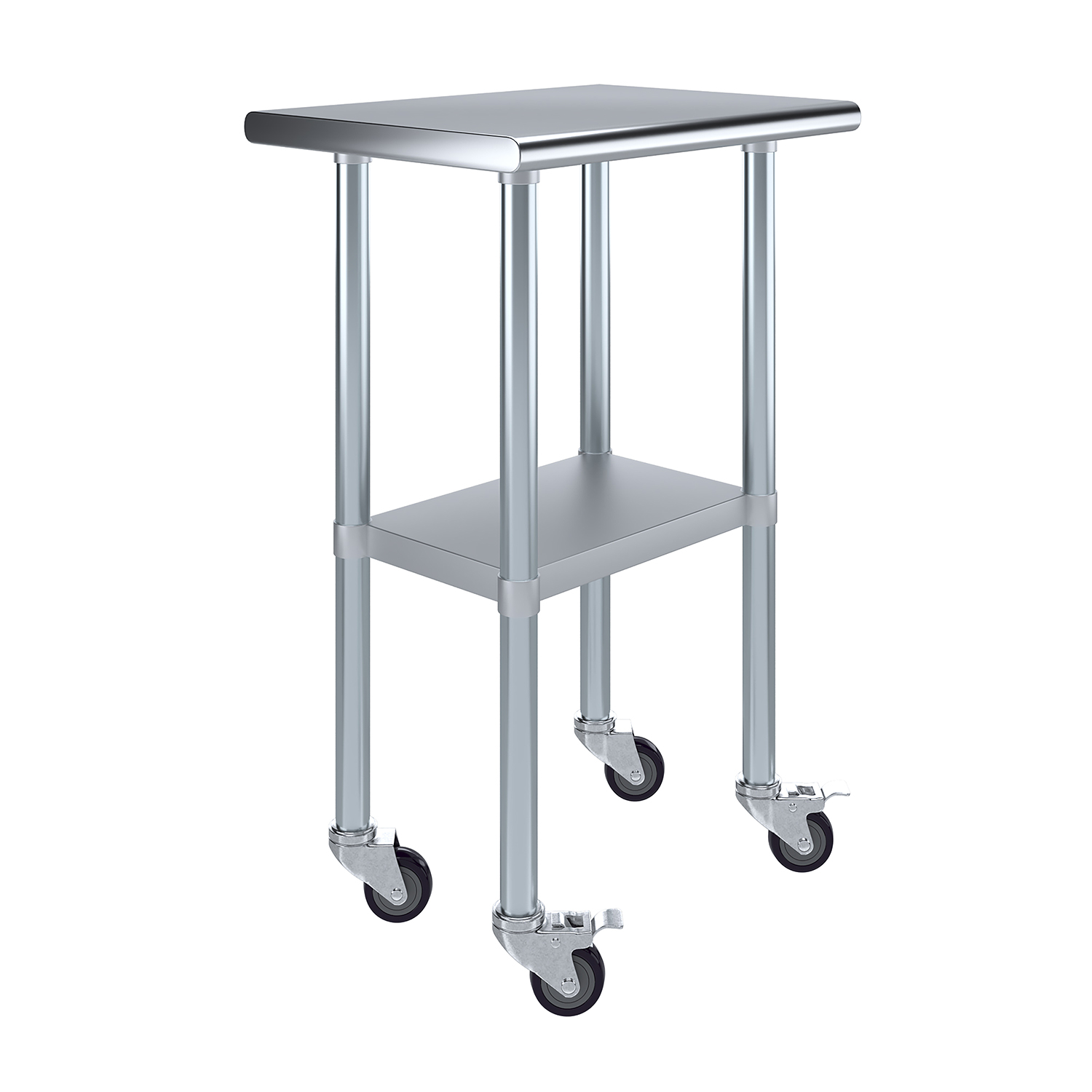 Upgrade your workspace with this versatile and practical work table that combines high functionality with contemporary design. Perfect for enhancing productivity and organization, the 18″ x 24″ Stainless Steel Work Table with Undershelf and Wheels is an indispensable asset for any professional setting, providing durability, convenience, and efficiency in a compact, mobile unit.
