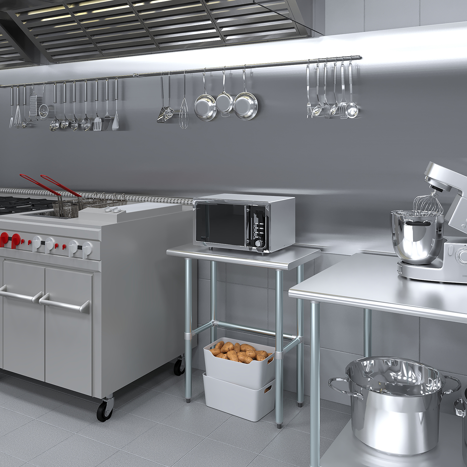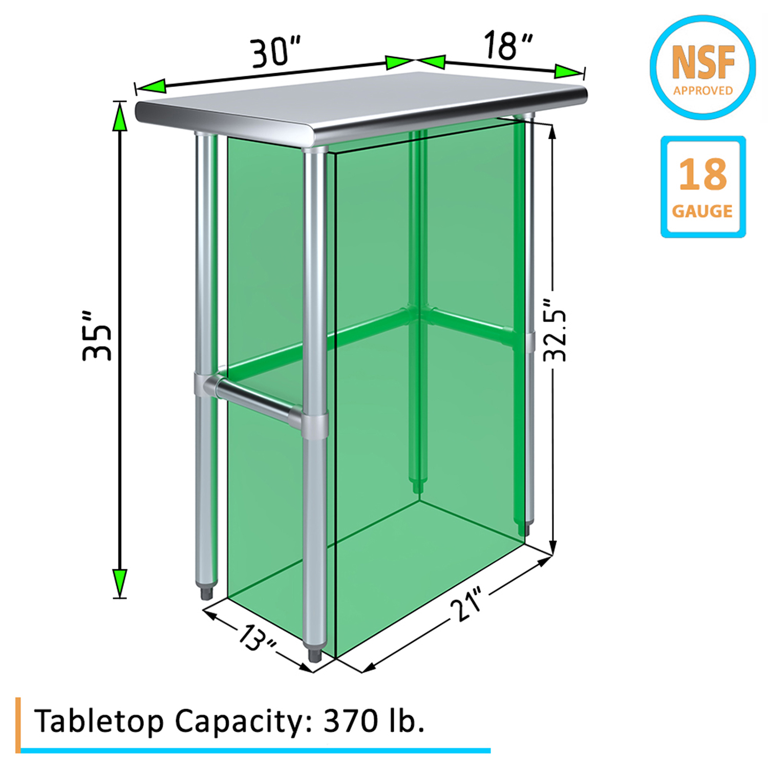 Enhance your workspace with the versatile and durable 18″ x 30″ Stainless Steel Work Table with Open Base. Crafted from 18GA/430 stainless steel, this work table is designed to withstand the rigors of daily use in commercial kitchens, workshops, laboratories, and other demanding environments. Its sleek, smooth surface is not only easy to clean but also resistant, ensuring long-lasting performance and hygiene.
