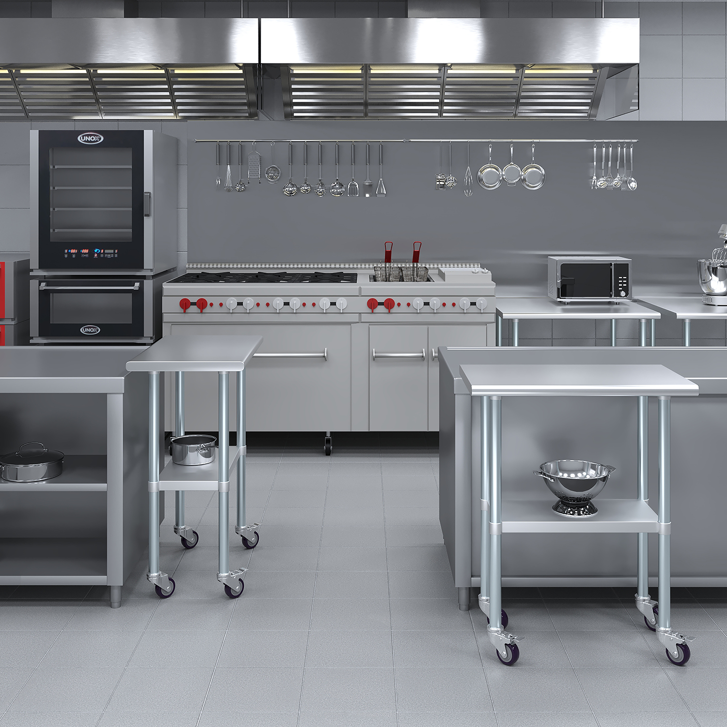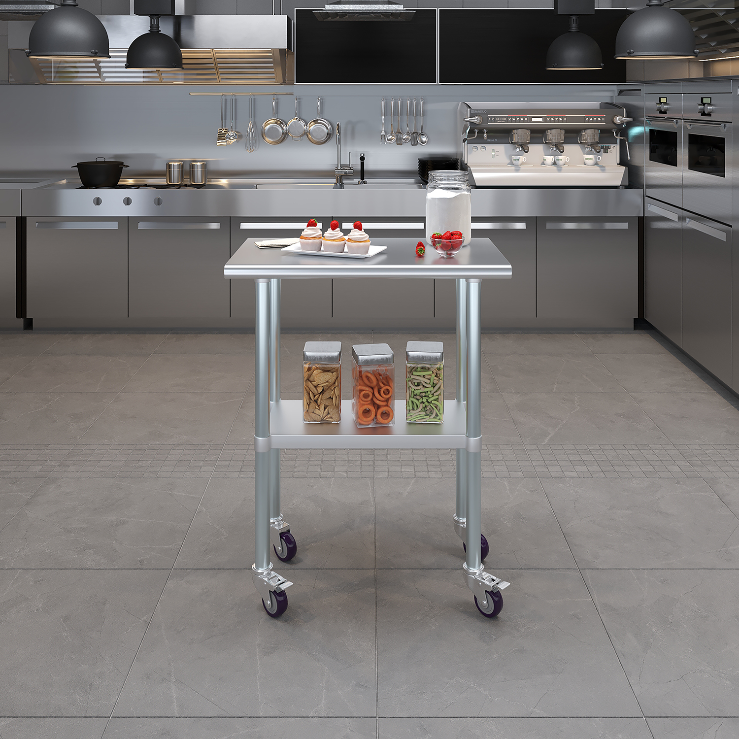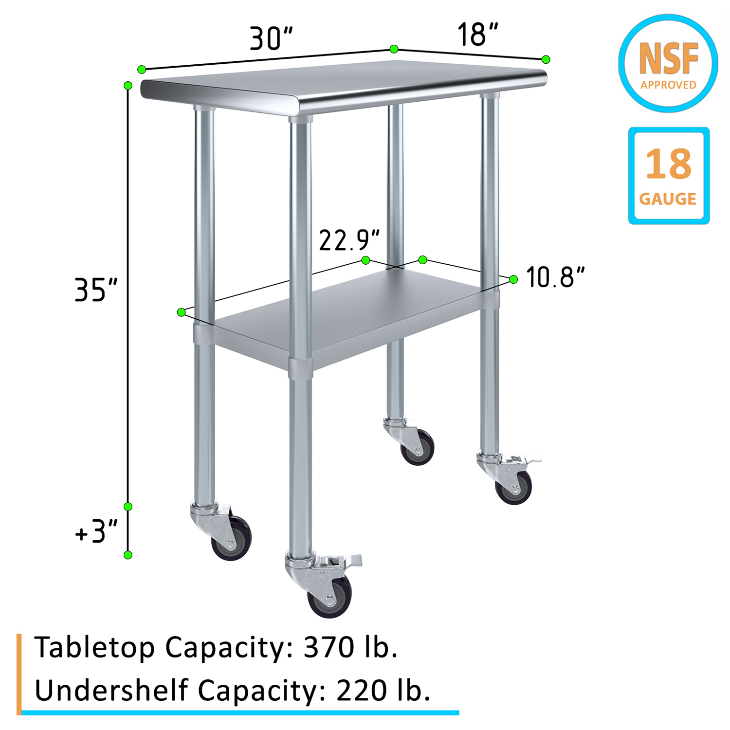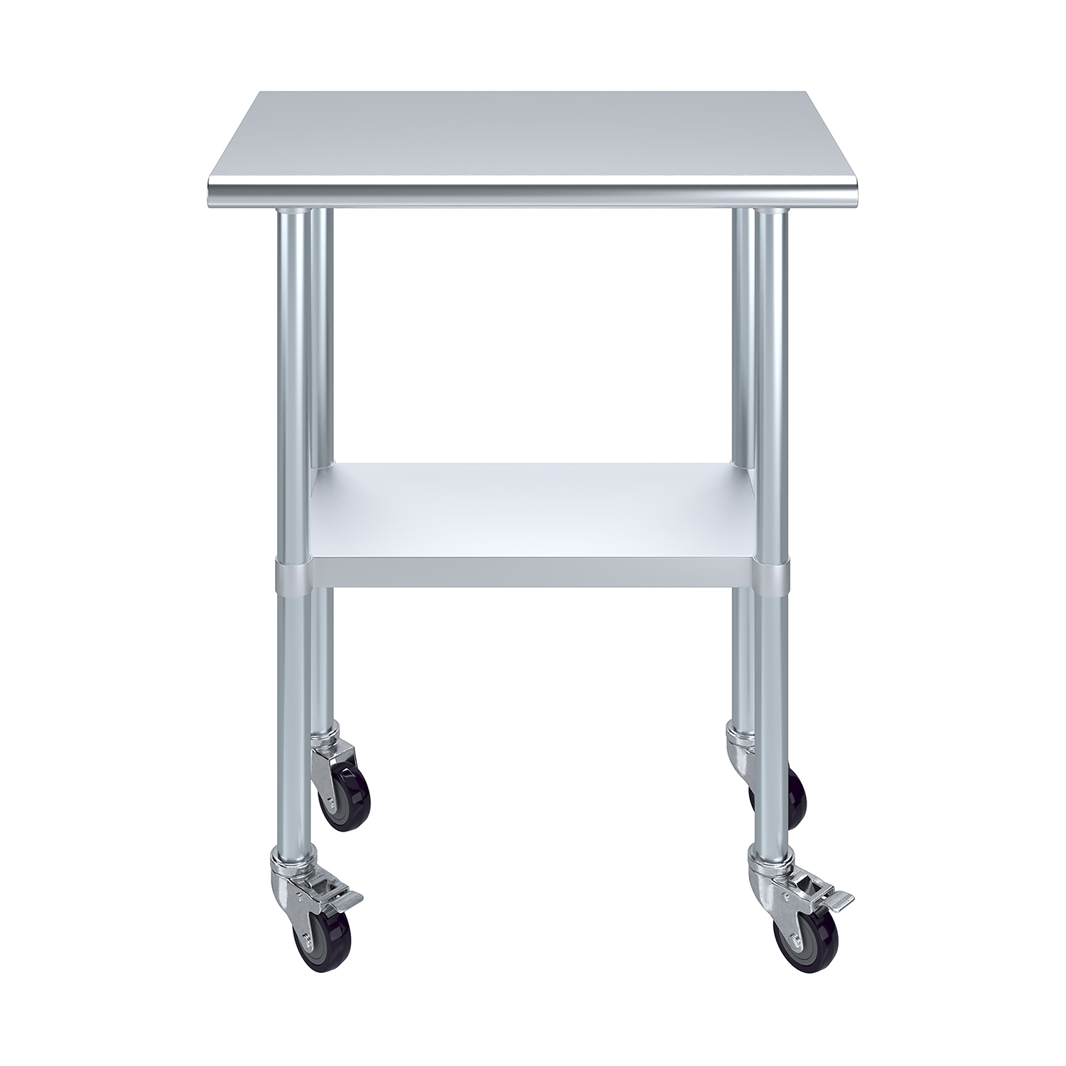 Optimize your workspace with the 18″ x 30″ Stainless Steel Work Table featuring an undershelf and a set of four wheels for enhanced mobility and storage. This work table is constructed from 18GA/430 stainless steel, ensuring a durable, easy-to-clean surface. Designed for demanding environments such as commercial kitchens, laboratories, and workshops, this table guarantees long-lasting performance and reliability.