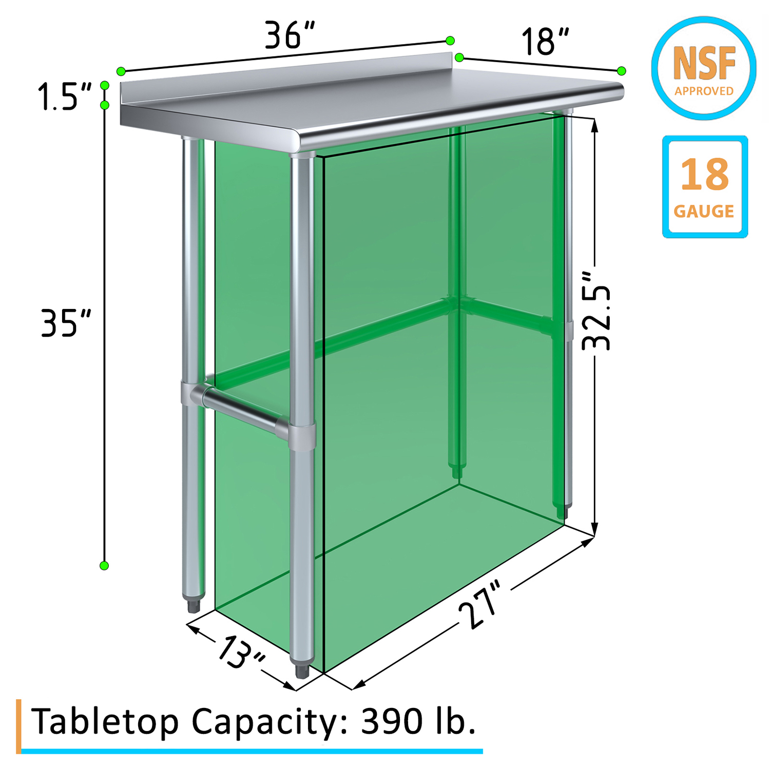 Upgrade your workspace with this versatile and practical work table that combines high functionality with contemporary design. Perfect for enhancing productivity and organization, the 18″ x 36″ Stainless Steel Work Table with Open Base and 1.5″ Backsplash is an essential asset for any professional setting.