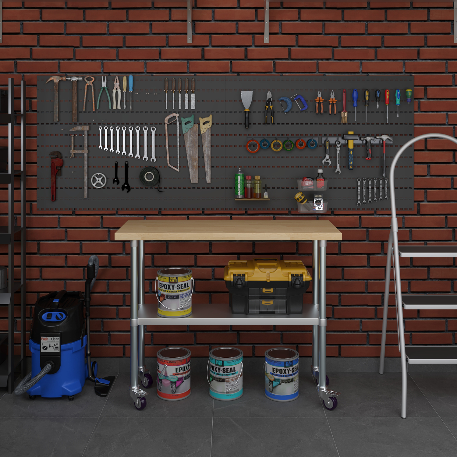For added convenience, the work table comes with a set of four sturdy wheels, allowing for effortless mobility and repositioning as needed. Whether you need to move the table across the kitchen or reposition it in a workshop, the smooth-rolling wheels make it easy to transport without compromising stability. Two of the wheels are equipped with locking mechanisms, ensuring that the table remains securely in place during use.