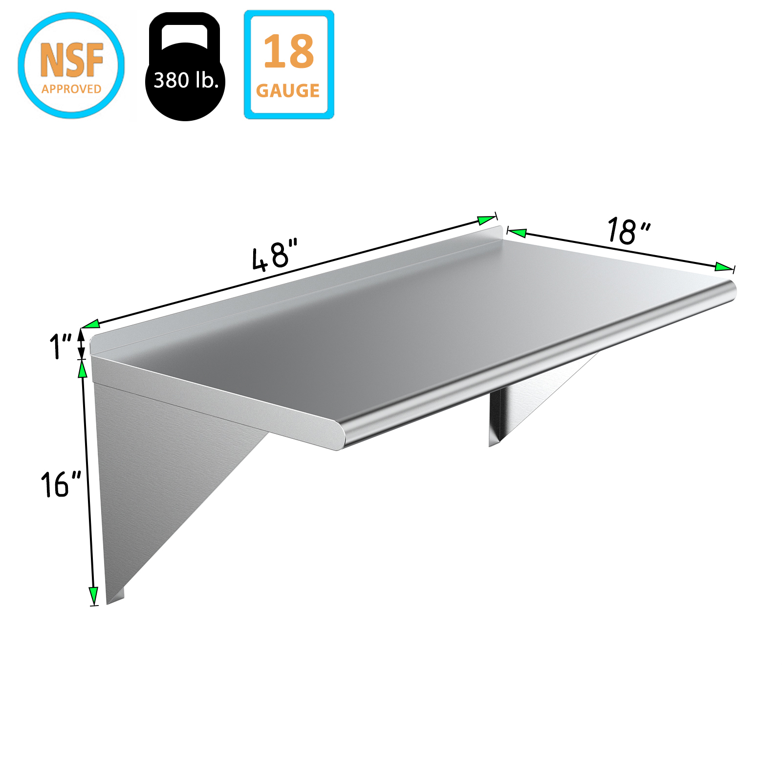 Installation is straightforward with the included mounting hardware, allowing you to securely attach the shelf to any wall surface. The smooth surface is easy to clean, making maintenance a breeze. Whether you need extra storage in your home or a reliable shelving option for your business, our18″ X 48″ Stainless Steel Wall Mount Shelf is the ideal choice.