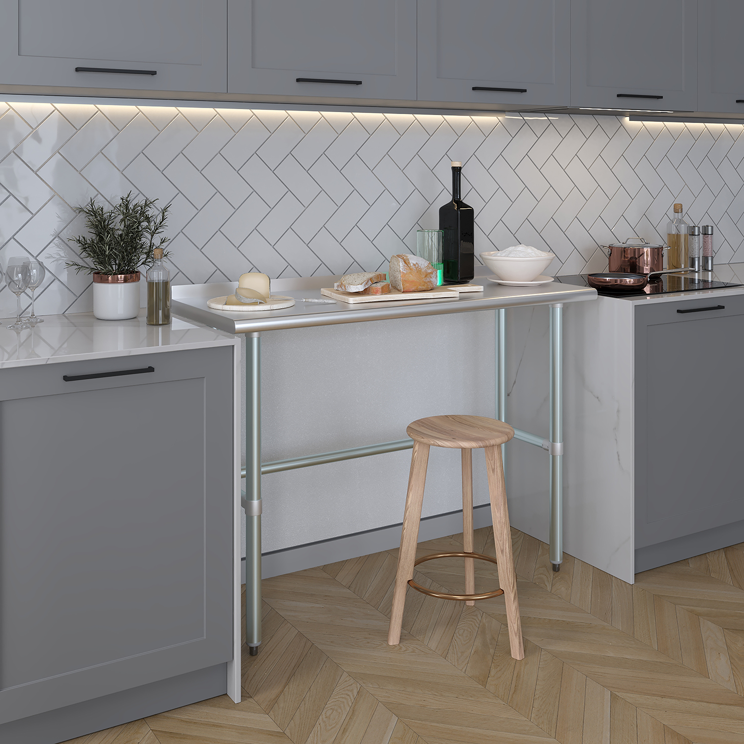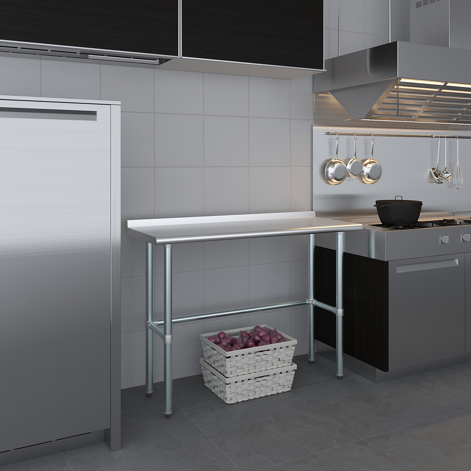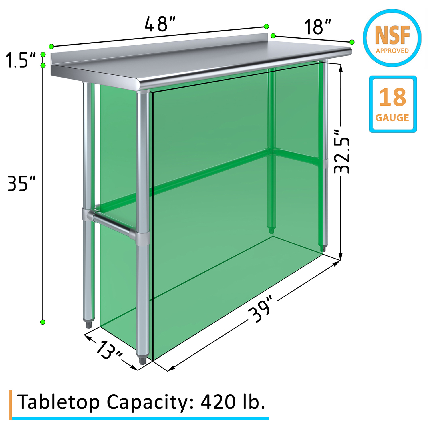 The 1.5″ backsplash is designed to contain spills and splashes, protecting your walls and maintaining a clean and sanitary work area. This feature is especially useful in food preparation settings, where hygiene is paramount. The sleek, smooth surface of the table allows for effortless cleaning, helping you maintain high standards of cleanliness with minimal effort.
