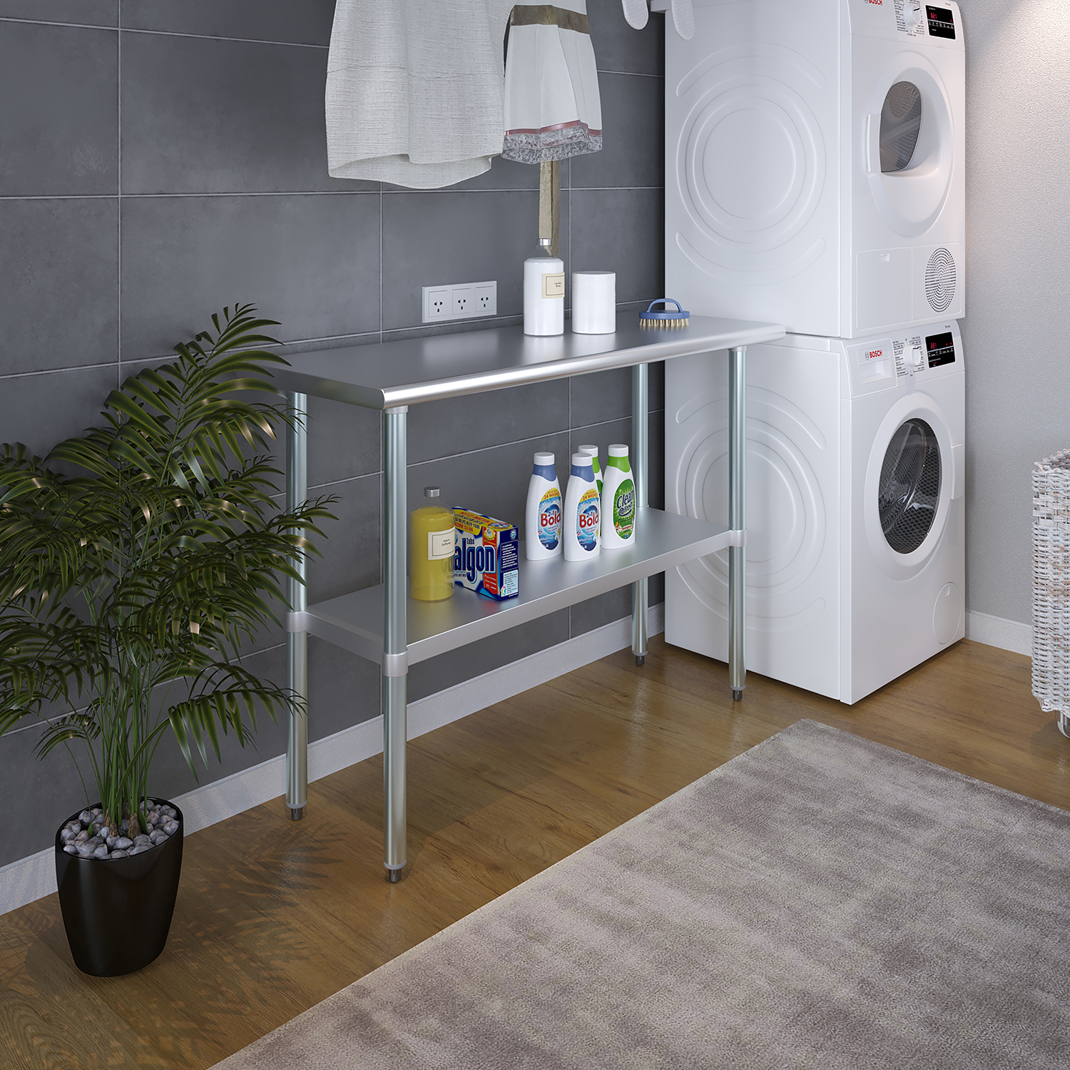 A key feature of this work table is the adjustable undershelf, which offers additional storage space for tools, supplies, and equipment. This undershelf can be positioned at your preferred height, allowing for customized storage solutions that meet your specific needs. Whether you need to store heavy equipment or small utensils, this versatile shelf enhances the functionality of your workspace by keeping essential items within easy reach.
