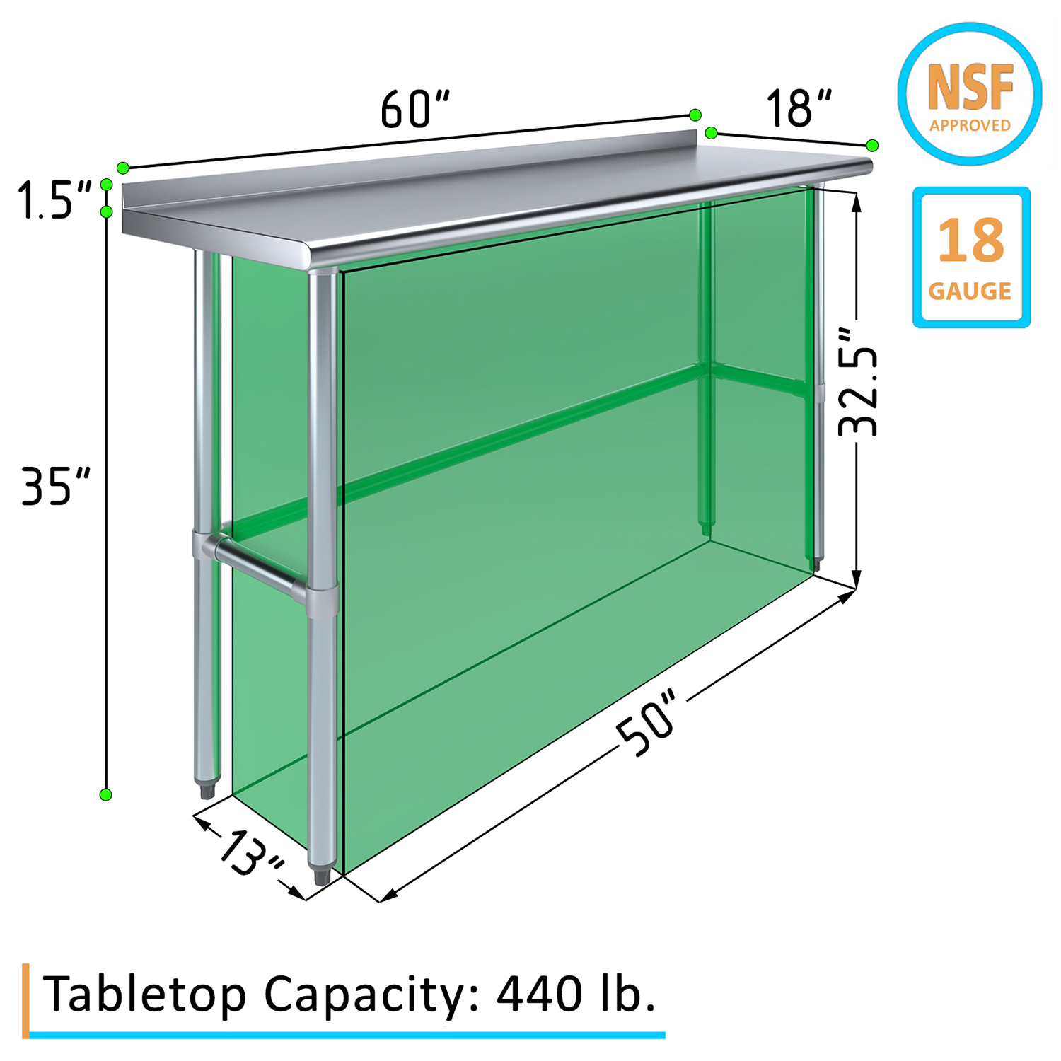 The 1.5″ backsplash is designed to contain spills and splashes, protecting your walls and maintaining a clean and sanitary work area. This feature is especially useful in food preparation settings, where hygiene is paramount. The sleek, smooth surface of the table allows for effortless cleaning, helping you maintain high standards of cleanliness with minimal effort.