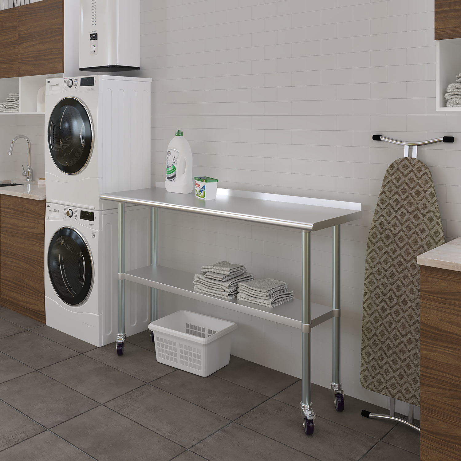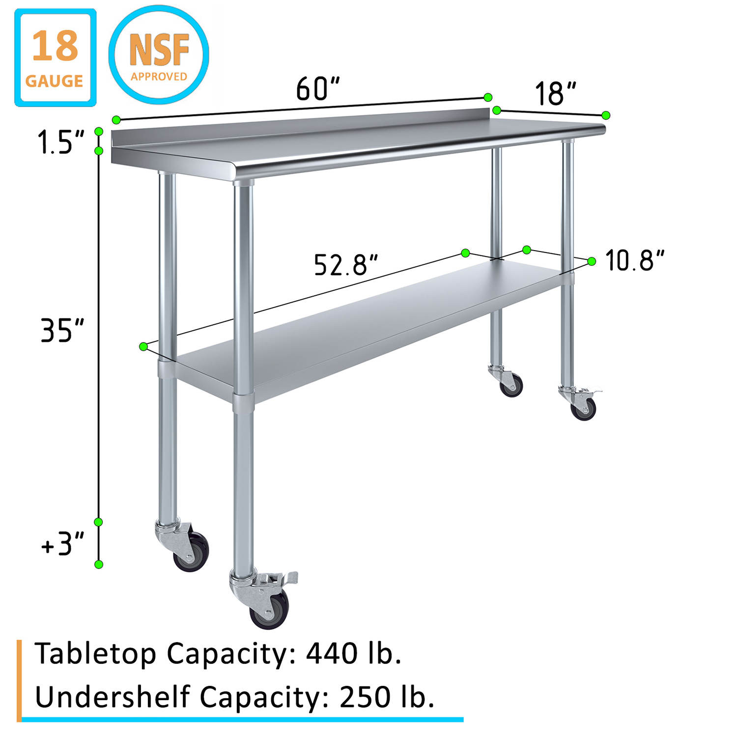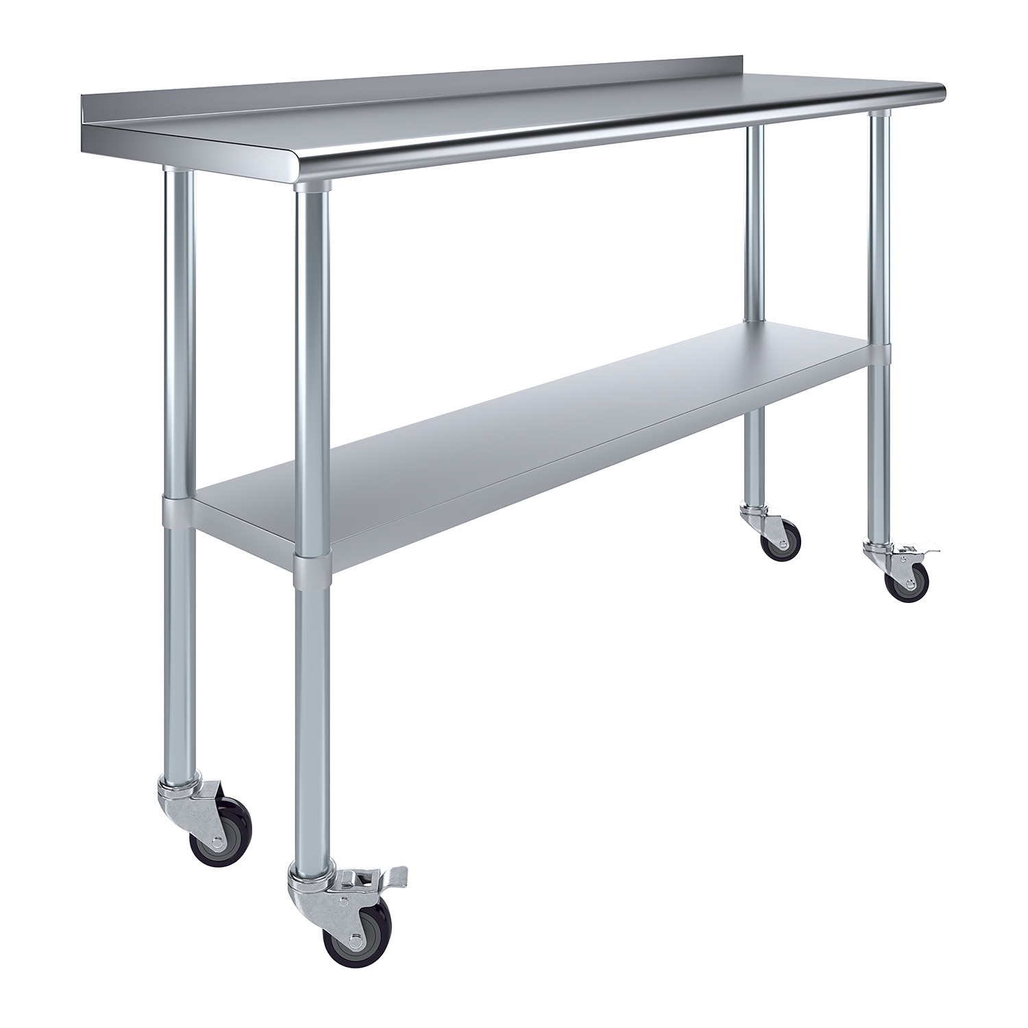 Upgrade your workspace with this versatile and practical work table that combines high functionality with contemporary design. Perfect for enhancing productivity and organization, the 18″ x 60″ Stainless Steel Work Table with 1.5″ Backsplash and Wheels is an essential asset for any professional setting, providing durability, convenience, and efficiency in a compact, mobile unit.
