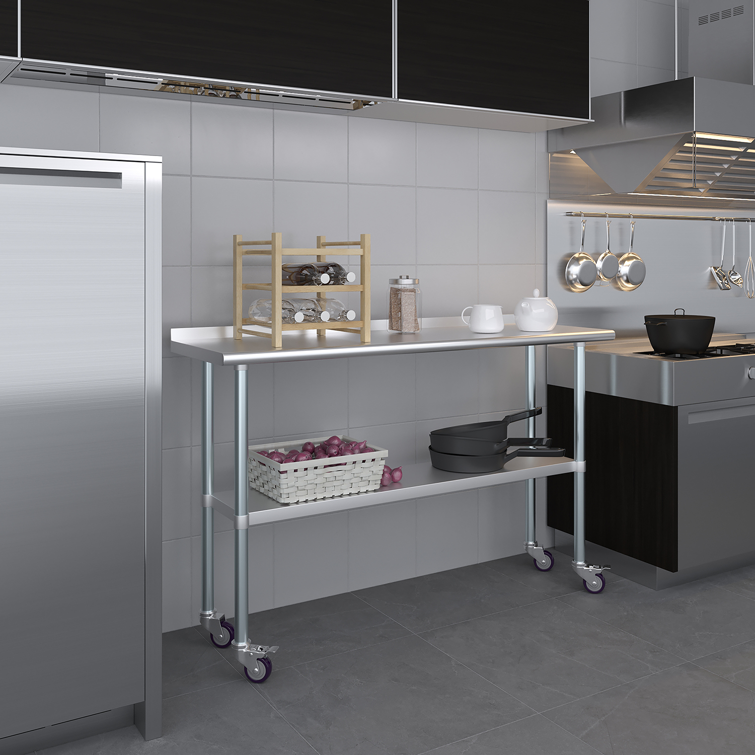 The modern, professional design of this stainless steel work table not only enhances functionality but also adds aesthetic value to your workspace. Whether you’re slicing vegetables in a busy kitchen, conducting research in a lab, or assembling components in a workshop, this work table is a reliable and stylish addition to your environment.