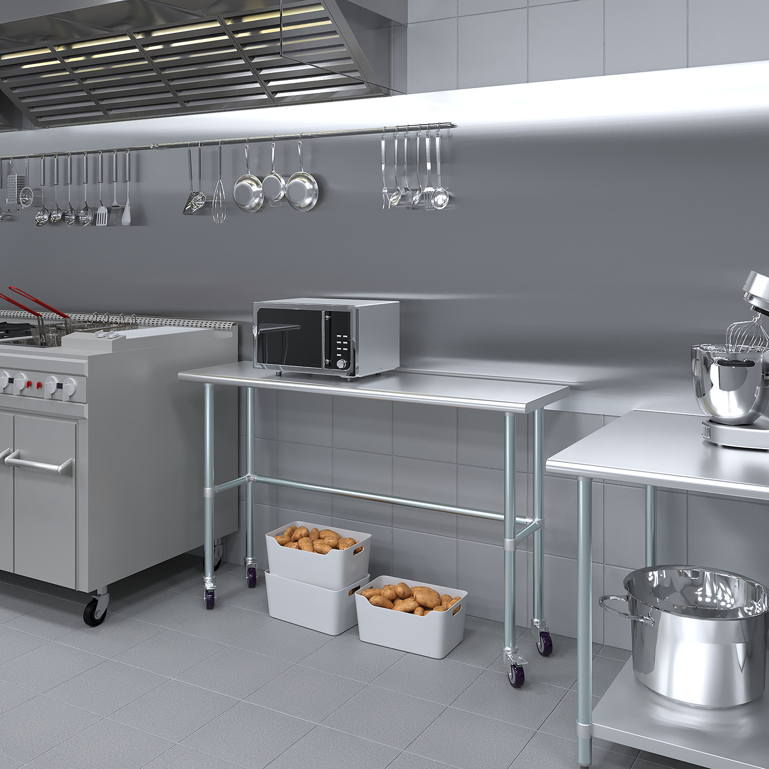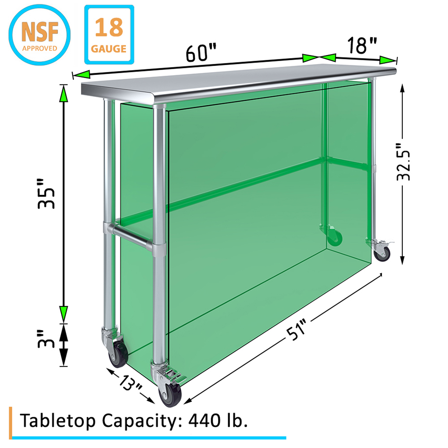 Optimize your workspace with the 18″ x 60″ Stainless Steel Work Table featuring an open base and a set of four wheels for enhanced mobility and versatility. This work table is constructed from 18GA/430 stainless steel, ensuring a durable, easy-to-clean surface. Designed for demanding environments such as commercial kitchens, laboratories, and workshops, this table guarantees long-lasting performance and reliability.