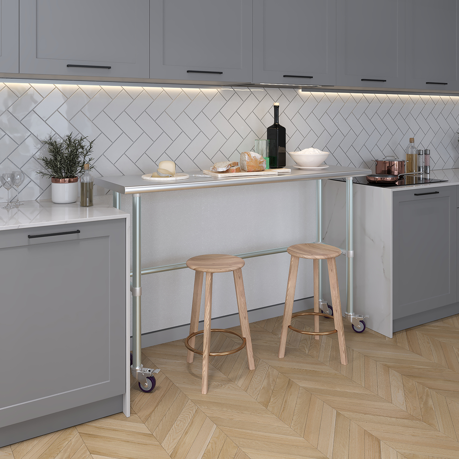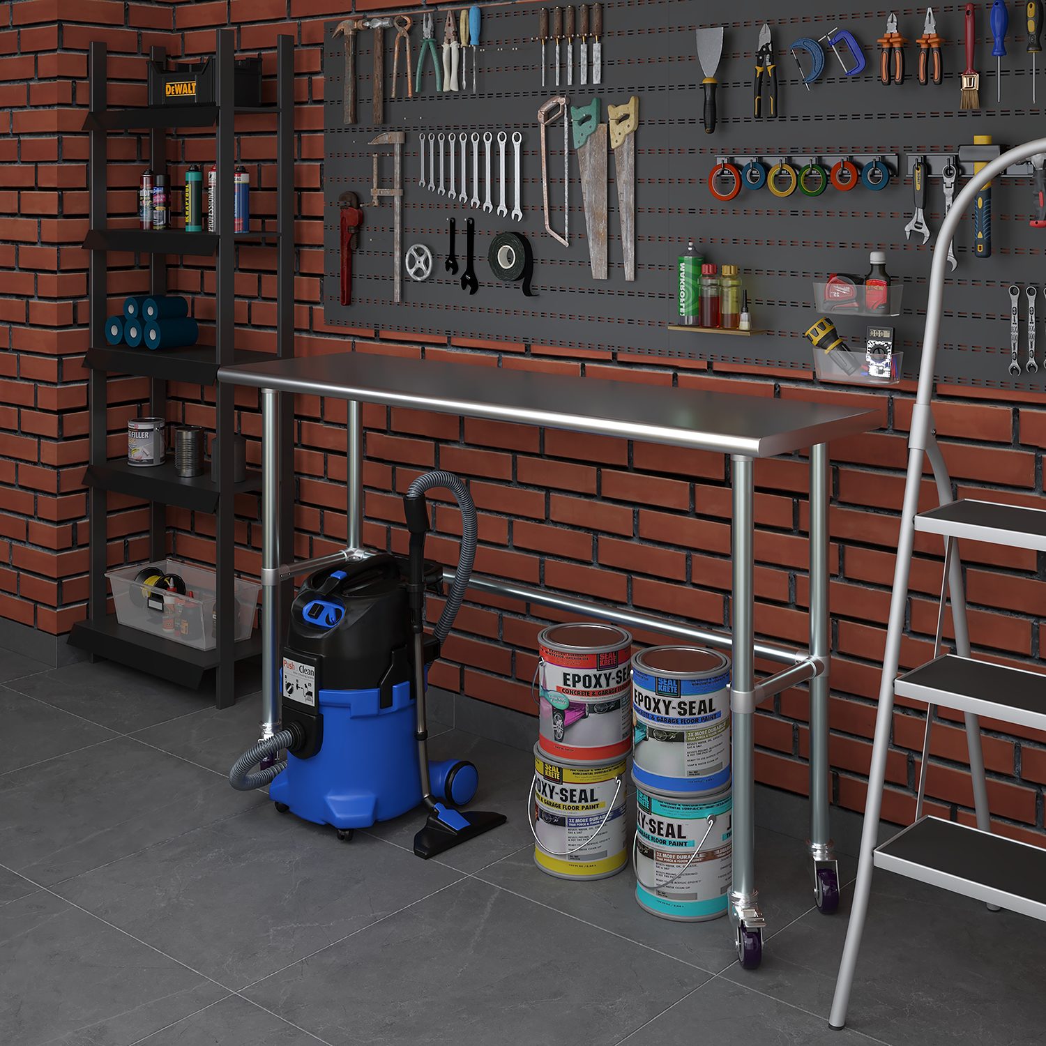 Equipped with a set of four wheels, this work table offers unparalleled mobility. The wheels are designed to glide smoothly across different surfaces, allowing you to reposition the table effortlessly as needed. This mobility is particularly beneficial in dynamic environments where flexibility and adaptability are crucial. Additionally, the wheels are equipped with locking mechanisms to ensure stability and prevent unwanted movement during use.
