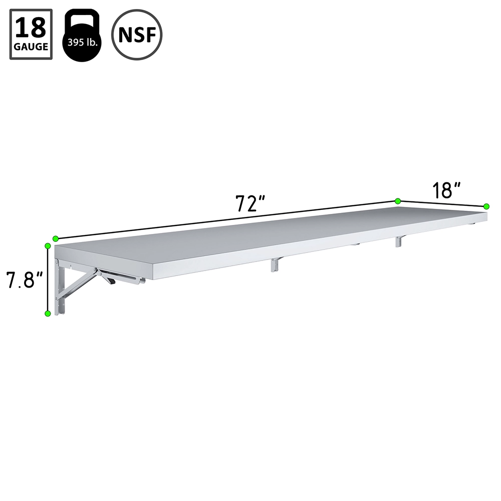 Introducing our 18″ x 72″ Stainless Steel Folding Wall Shelf, an innovative solution for maximizing space and organization in your kitchen, garage, or workspace. This quality shelf is meticulously crafted from 18GA/430 stainless steel, ensuring exceptional durability and resistance, making it ideal for both indoor and outdoor use. The sleek, modern design seamlessly integrates into any setting, adding both functionality and aesthetic appeal.