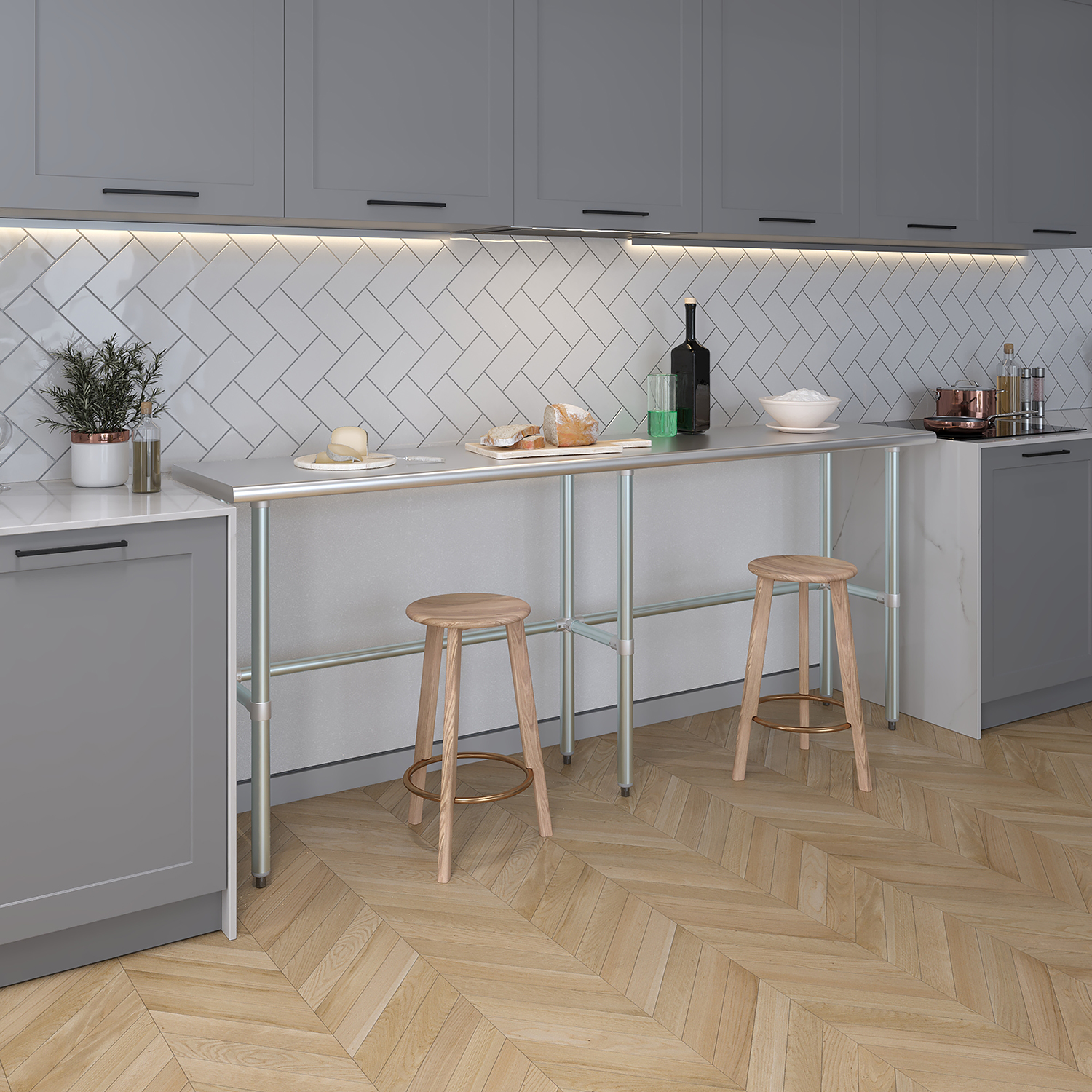 Measuring 18 inches by 84 inches, this work table offers a compact footprint that fits seamlessly into smaller spaces while still providing ample workspace for your projects. The clean, modern design complements any setting, adding a touch of professionalism to your environment. Whether you’re slicing ingredients in a busy kitchen, assembling components in a workshop, or conducting experiments in a lab, this stainless steel work table is a reliable and stylish addition to your workspace.