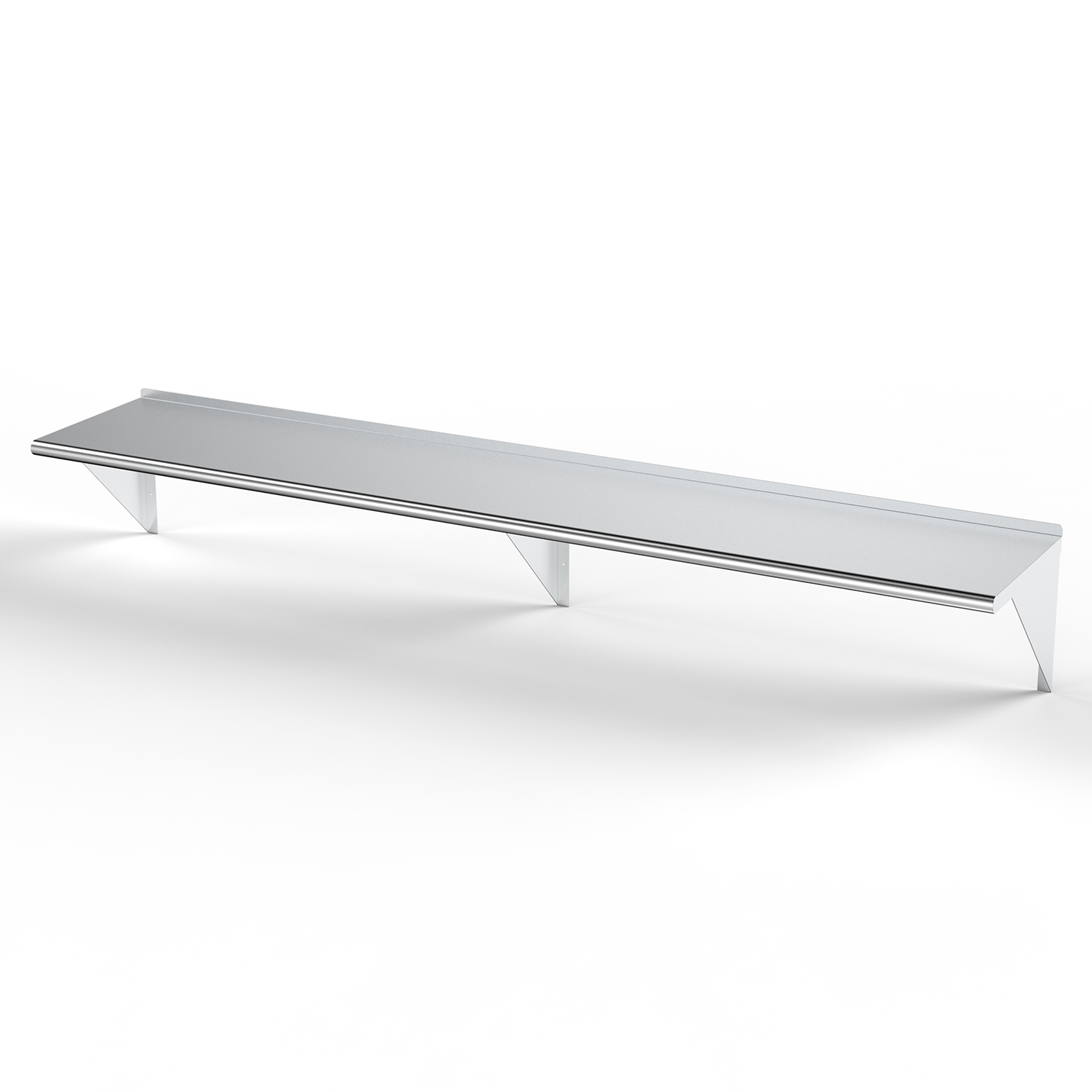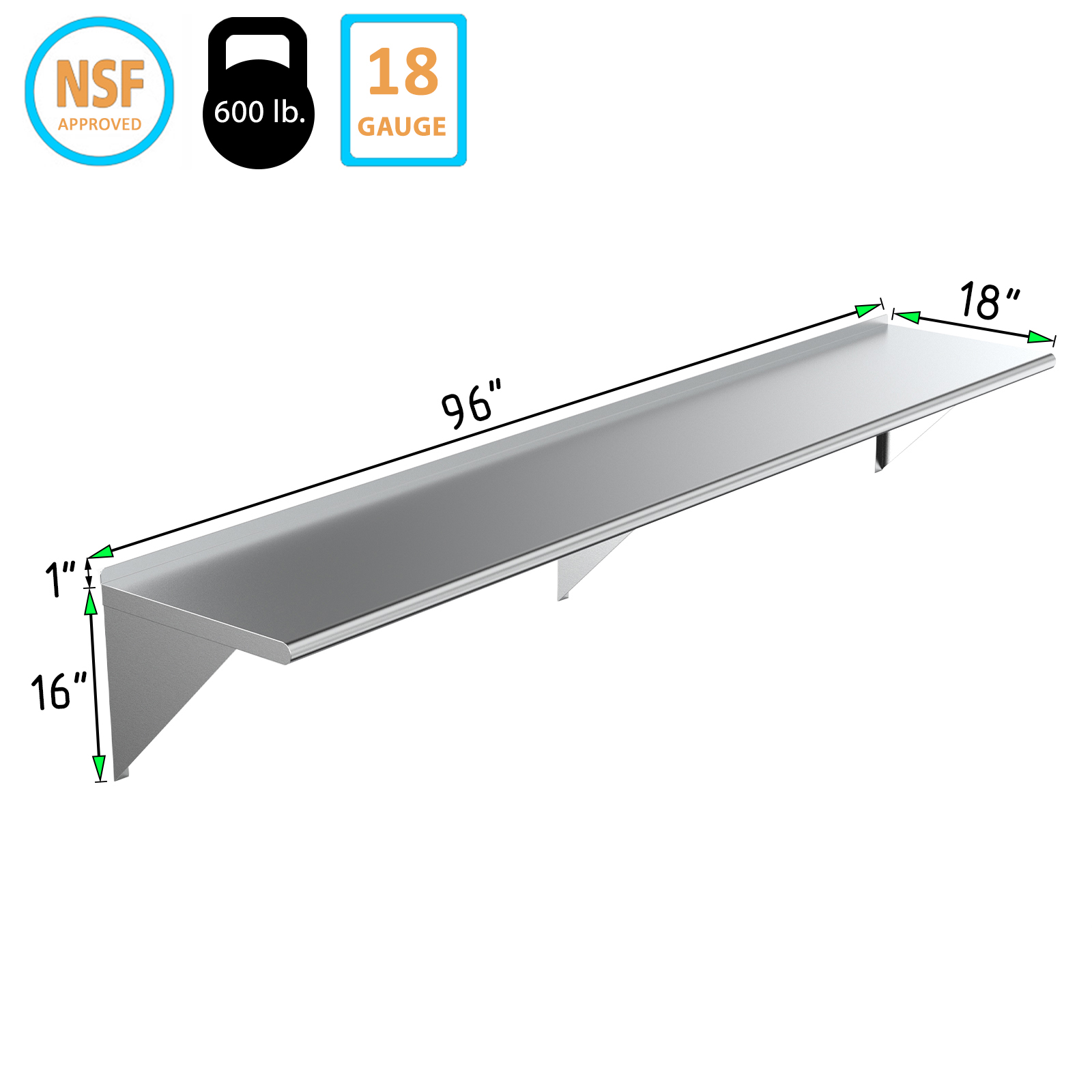 Installation is straightforward with the included mounting hardware, allowing you to securely attach the shelf to any wall surface. The smooth surface is easy to clean, making maintenance a breeze. Whether you need extra storage in your home or a reliable shelving option for your business, our 18″ X 96″ Stainless Steel Wall Mount Shelf is the ideal choice.