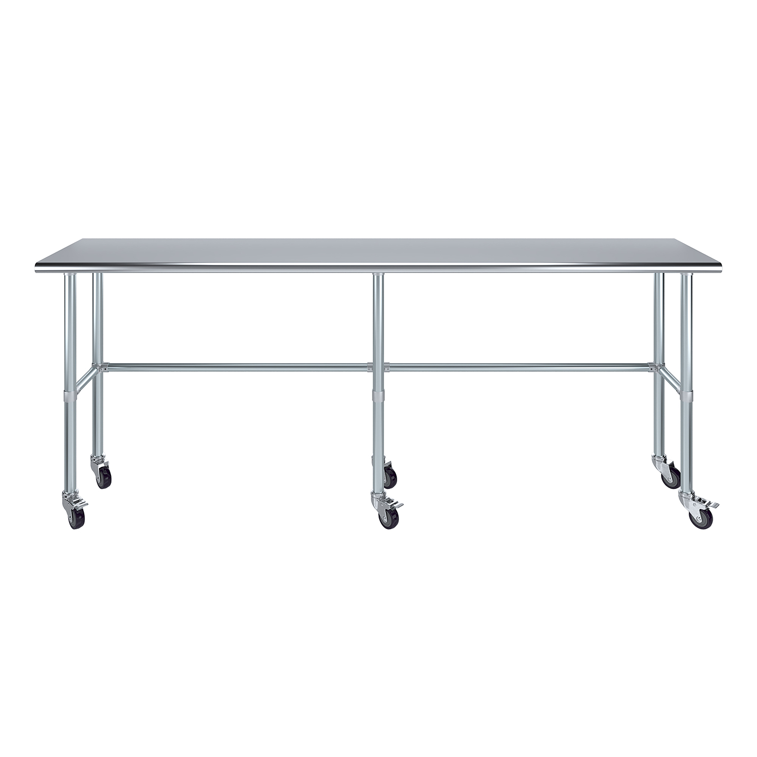 Optimize your workspace with the 18″ x 96″ Stainless Steel Work Table featuring an open base and a set of six wheels for enhanced mobility and versatility. This work table is constructed from 18GA/430 stainless steel, ensuring a durable, easy-to-clean surface. Designed for demanding environments such as commercial kitchens, laboratories, and workshops, this table guarantees long-lasting performance and reliability.