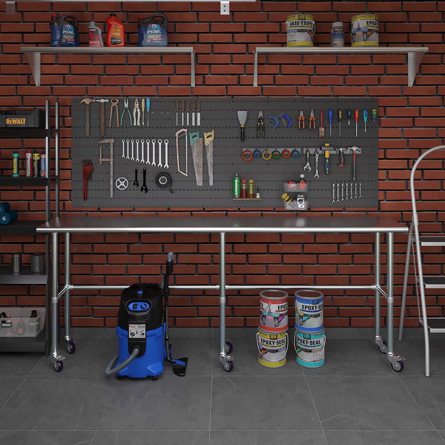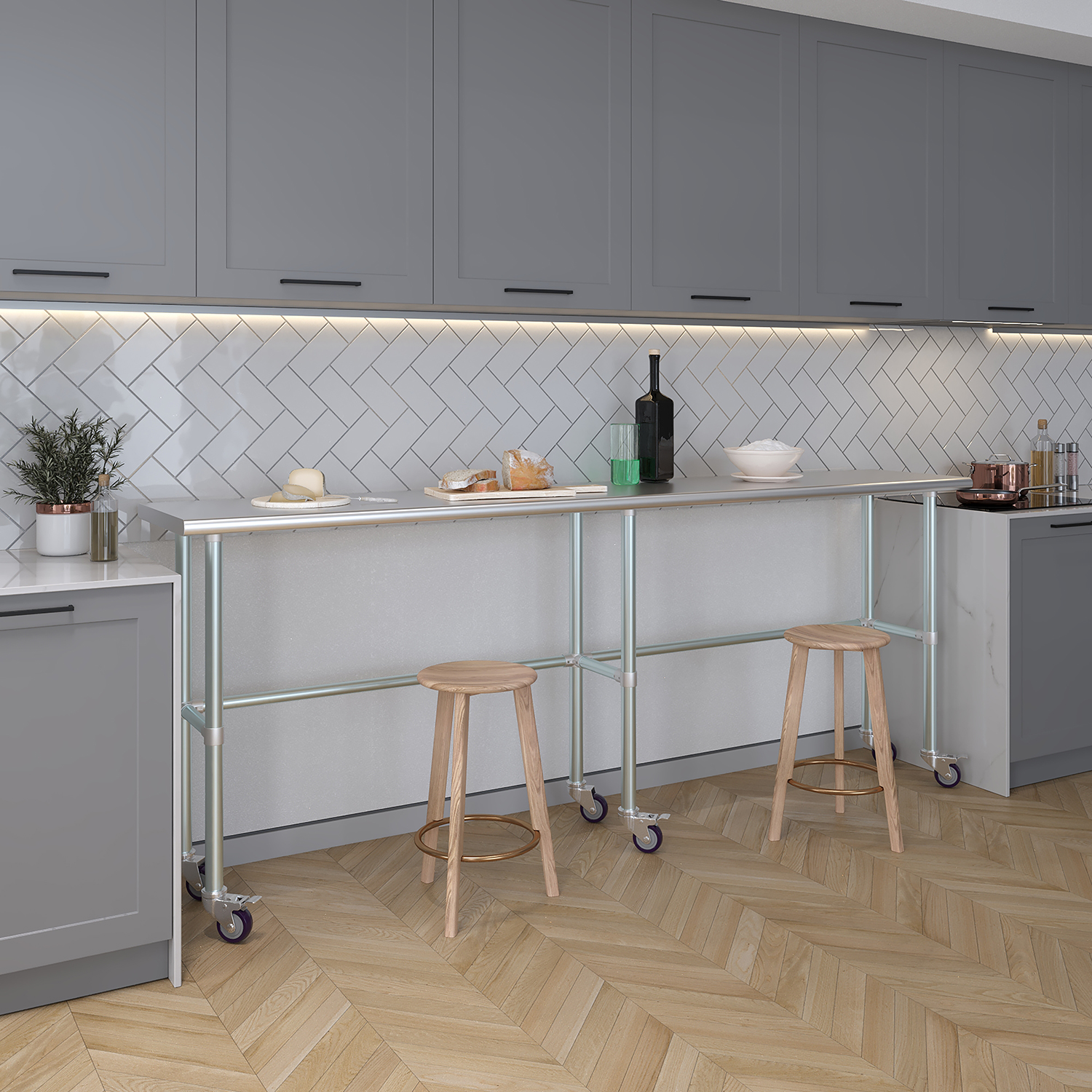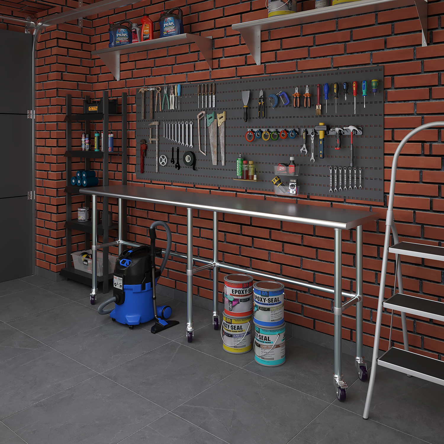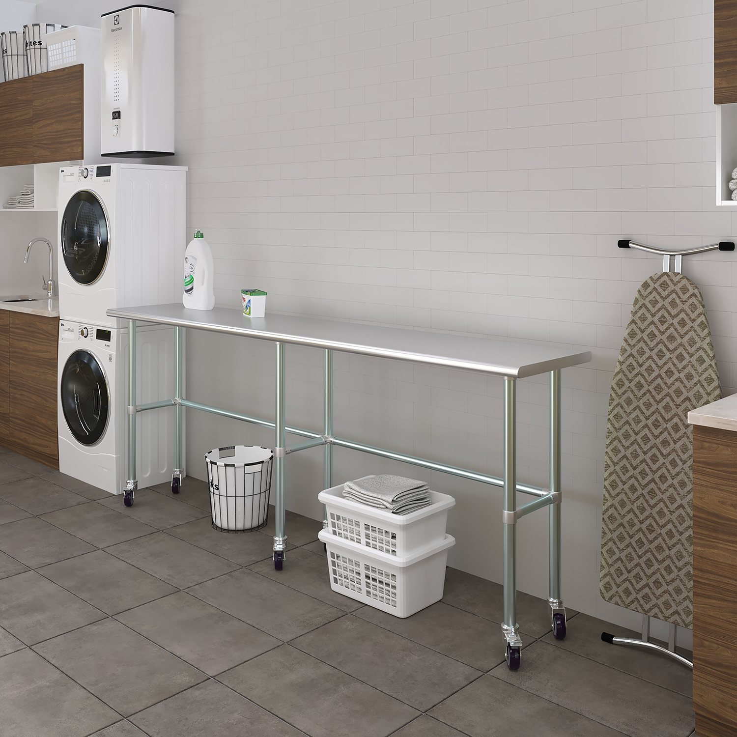 Equipped with a set of six wheels, this work table offers unparalleled mobility. The wheels are designed to glide smoothly across different surfaces, allowing you to reposition the table effortlessly as needed. This mobility is particularly beneficial in dynamic environments where flexibility and adaptability are crucial. Additionally, the wheels are equipped with locking mechanisms to ensure stability and prevent unwanted movement during use.