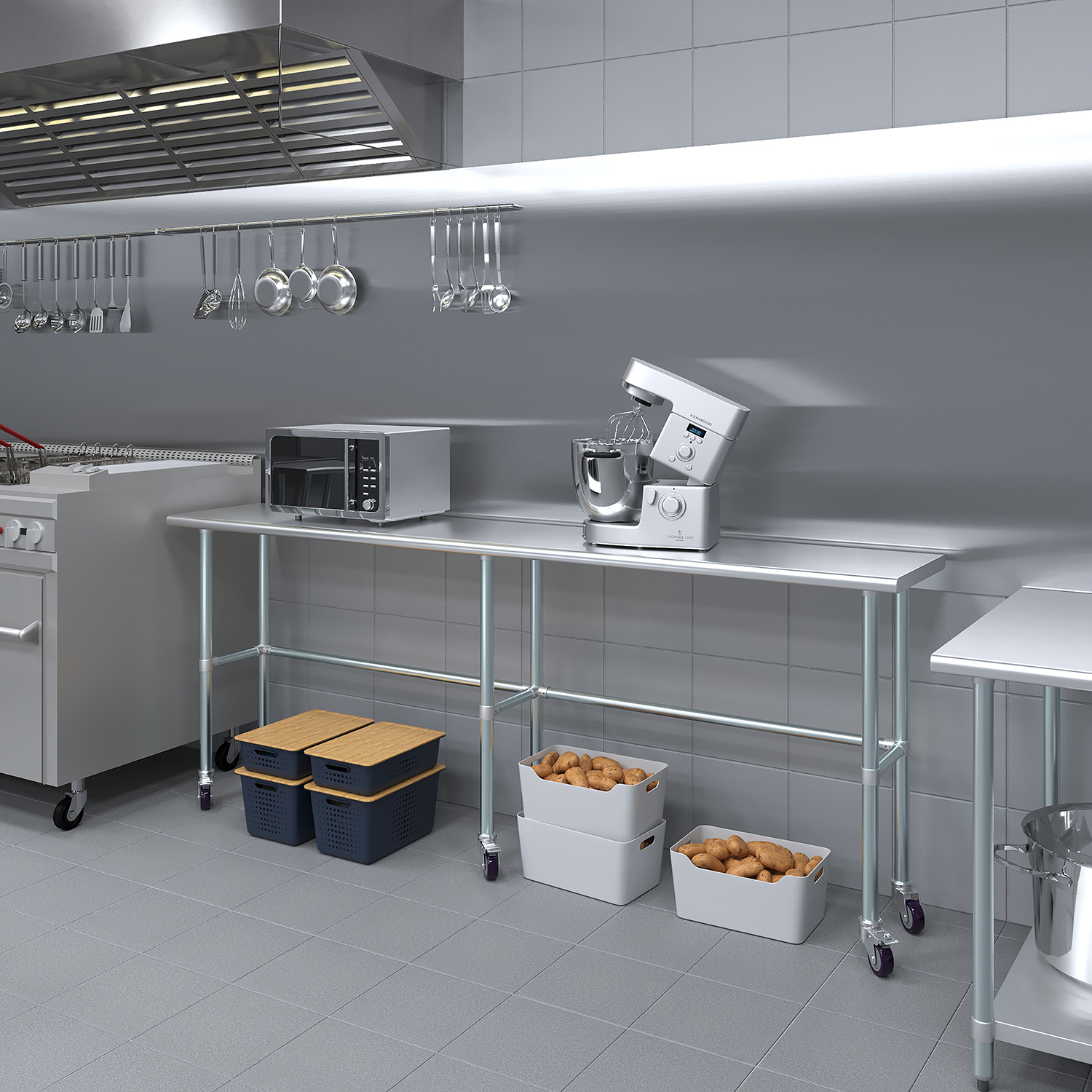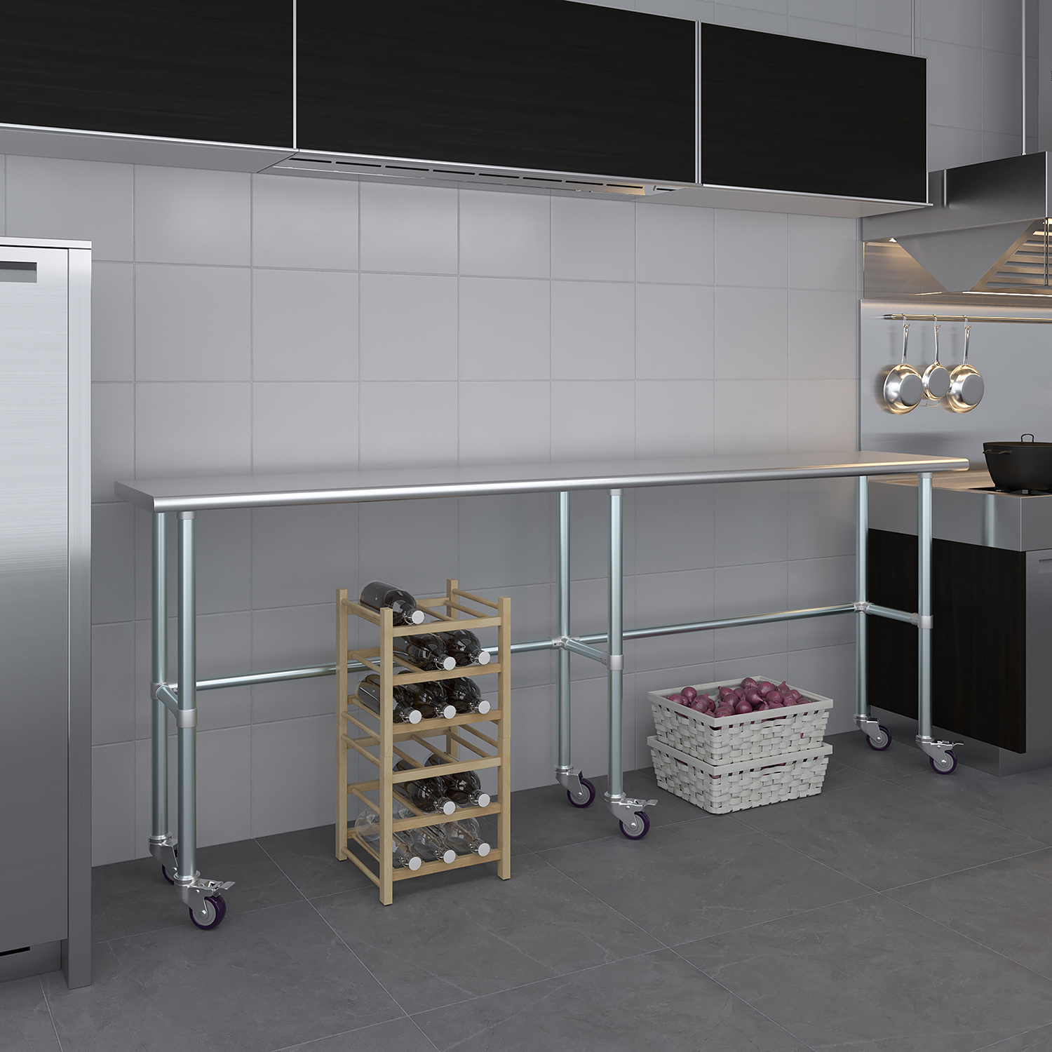 The sleek and modern design of this stainless steel work table not only enhances functionality but also adds a touch of professionalism to any workspace. Whether you’re slicing vegetables in a busy kitchen, conducting research in a lab, or assembling components in a workshop, this work table is a reliable and stylish addition to your environment.