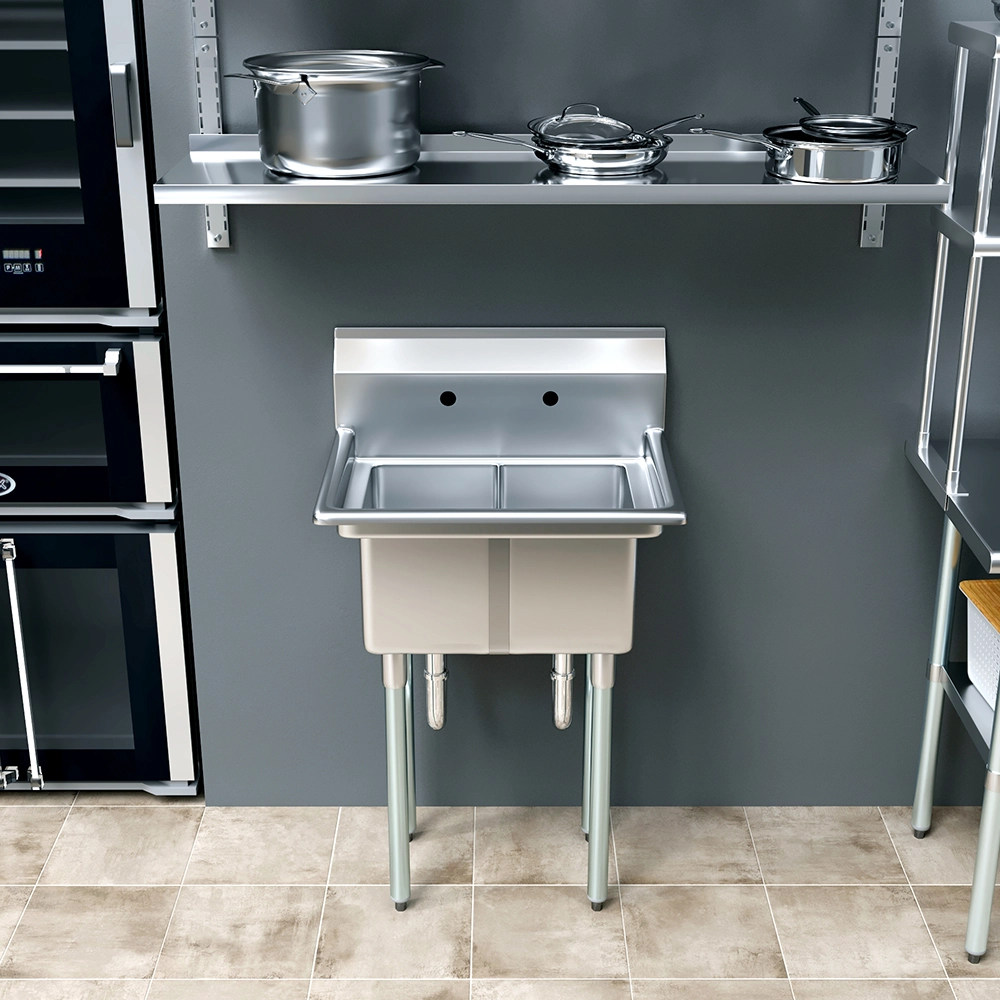 Optimize your workspace with the 20 in. x 26 in. Stainless Steel Two-Compartment Sink, a durable and versatile solution for cleaning, rinsing, and prep tasks. Designed for both residential and commercial use, this sink is crafted from 18GA/304 stainless steel to resist corrosion and stains, ensuring long-lasting performance in demanding environments like kitchens, utility rooms, and workshops.