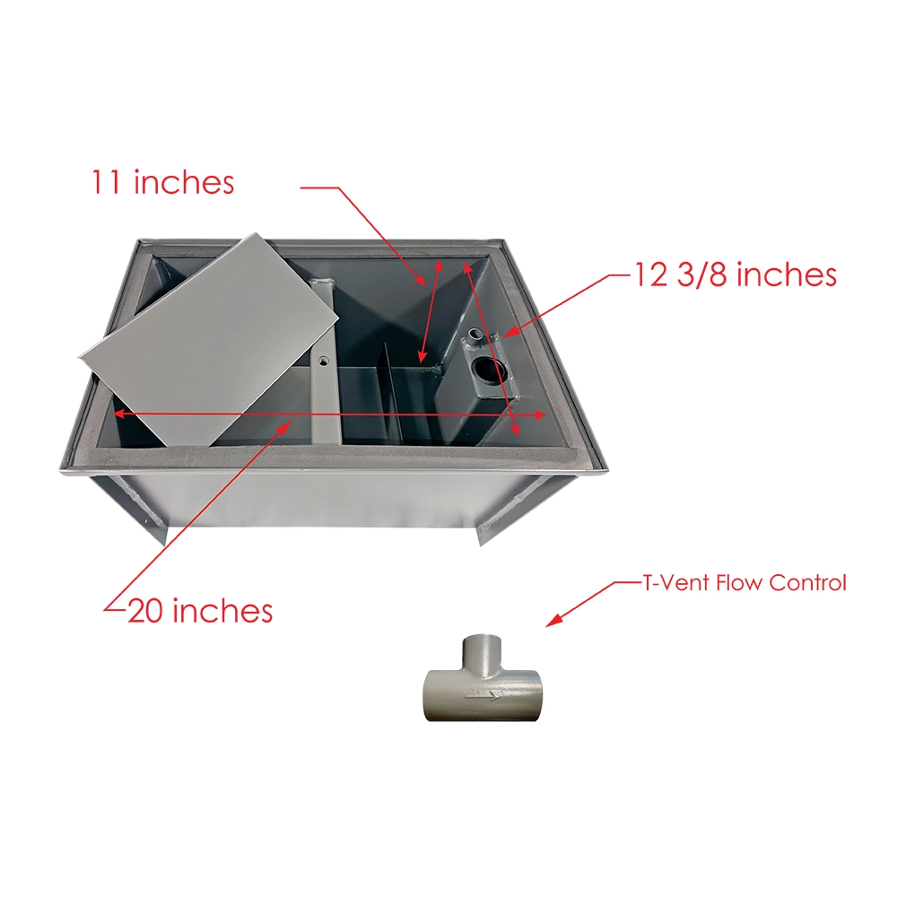 Introducing our 20 LB Carbon Steel Grease Trap Interceptor, designed for under-sink installation with a flow rate of 10 GPM. Constructed from robust carbon steel, this grease trap effectively captures and separates grease and solid particles from wastewater, preventing clogs and ensuring smooth plumbing operation. Its 20-pound capacity is ideal for small to medium-sized kitchens. Easy to install and maintain, this grease trap features a secure lid and compact design, fitting seamlessly under sinks. Enhance your kitchen’s efficiency and compliance with our reliable carbon steel grease trap interceptor.