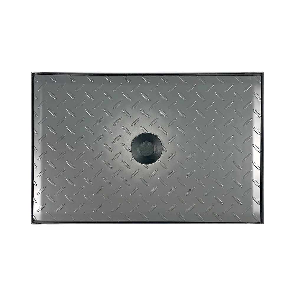 Diamond plate cover with a center bolt ensures a tight seal. Keeps unpleasant odors contained and maintains a clean, professional environment.