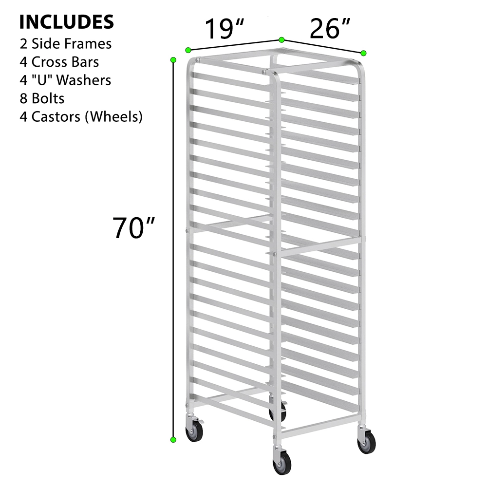 Delivered unassembled, the 20 Sheet Pan Rack comes with clear and straightforward assembly instructions. The easy-to-follow guide ensures that you can set up the rack quickly and without hassle, saving you time and effort. The unassembled design also makes it more convenient to transport and store the rack when not in use.