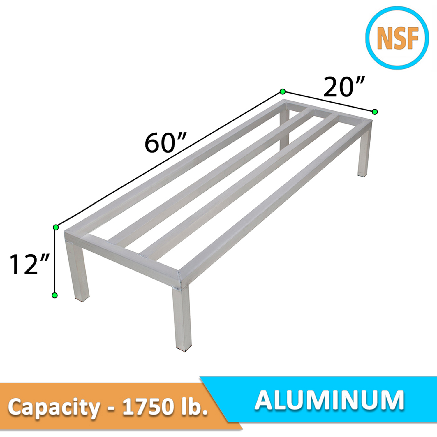 Introducing the 20″ Wide x 60″ Length x 12″ Height Aluminum Dunnage Rack, a premium storage solution designed to enhance the efficiency and organization of your commercial kitchen, warehouse, or storage room. Constructed from aluminum, this dunnage rack is built to last, offering exceptional, making it ideal for environments where durability and hygiene are paramount.