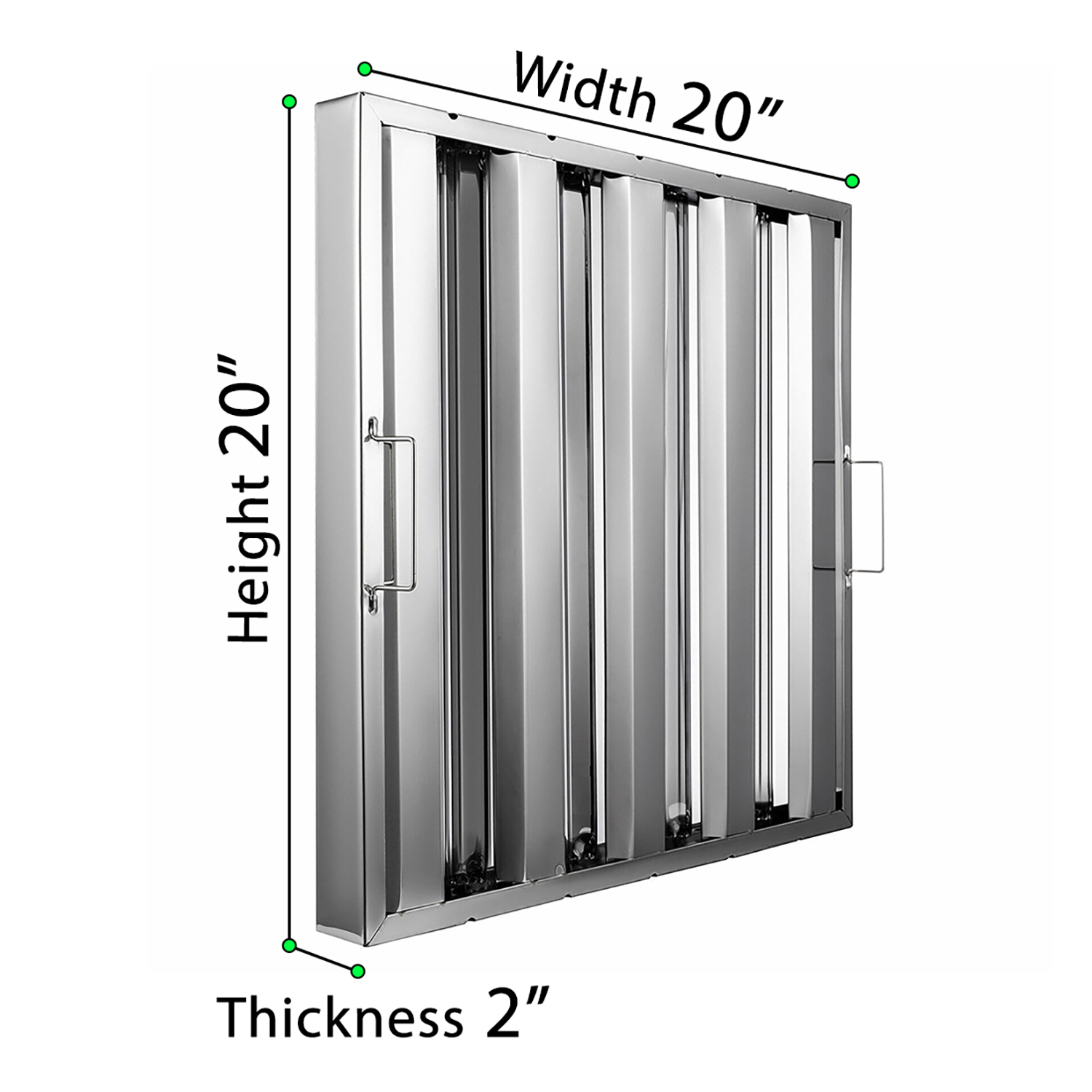 Enhance your kitchen ventilation system with our 20″ Width X 20″ Height X 2″ Thickness Stainless Steel Hood Filter, available in a convenient pack of 6. These filters are crafted from 430 stainless steel, offering exceptional durability and long-lasting performance. Designed to effectively trap grease, smoke, and particulates, these filters ensure a cleaner, safer, and more hygienic kitchen environment.